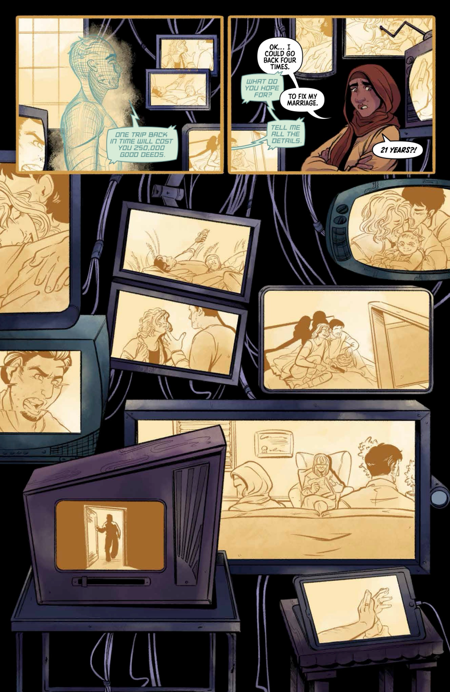 And that’s just the storytelling side. The creative team bringing these futures to life on the page is stacked. Cover art by Samira Idroos and Jamal Igle. Interior art by Jamal Igle, Silvio DB, Keiko Nishijima, and more across key stories like Academy of Mystic Arts, 1,034,323 Good Deeds, Lunch at the Penal Colony, Jinnestan, Momo the Magnificent, Nura of the Multiverse, The Island, The Sun Born Beneath, The Wedding, and Zoha. Colors by Joshua Jensen. Lettering by Sean Rinehart. Graphic design by Jason Luz. This is bold, expressive, high-caliber storytelling crafted with intention.