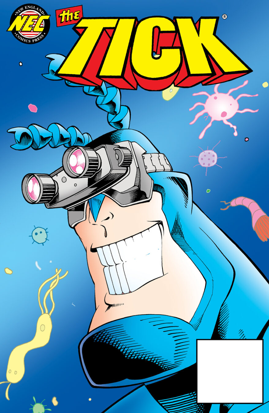 This exciting Special Edition comic book is published by Ian Chase Nichols and Jeff McClelland, partnering with long-time Tick publisher New England Comics Press to bring you a tale originally conceived by Ben Edlund himself! This comic features “The Microbe Adventure” from Benito Cereno (Invincible Presents, Tales from the Bully Pulpit), Nichols (TMNT, TMNT/Batman Adv., Conan) and Duane Redhead (2000AD, Teddy and the Yeti), with a backup tale by McClelland (The Illustrated Al, Planet Comics).