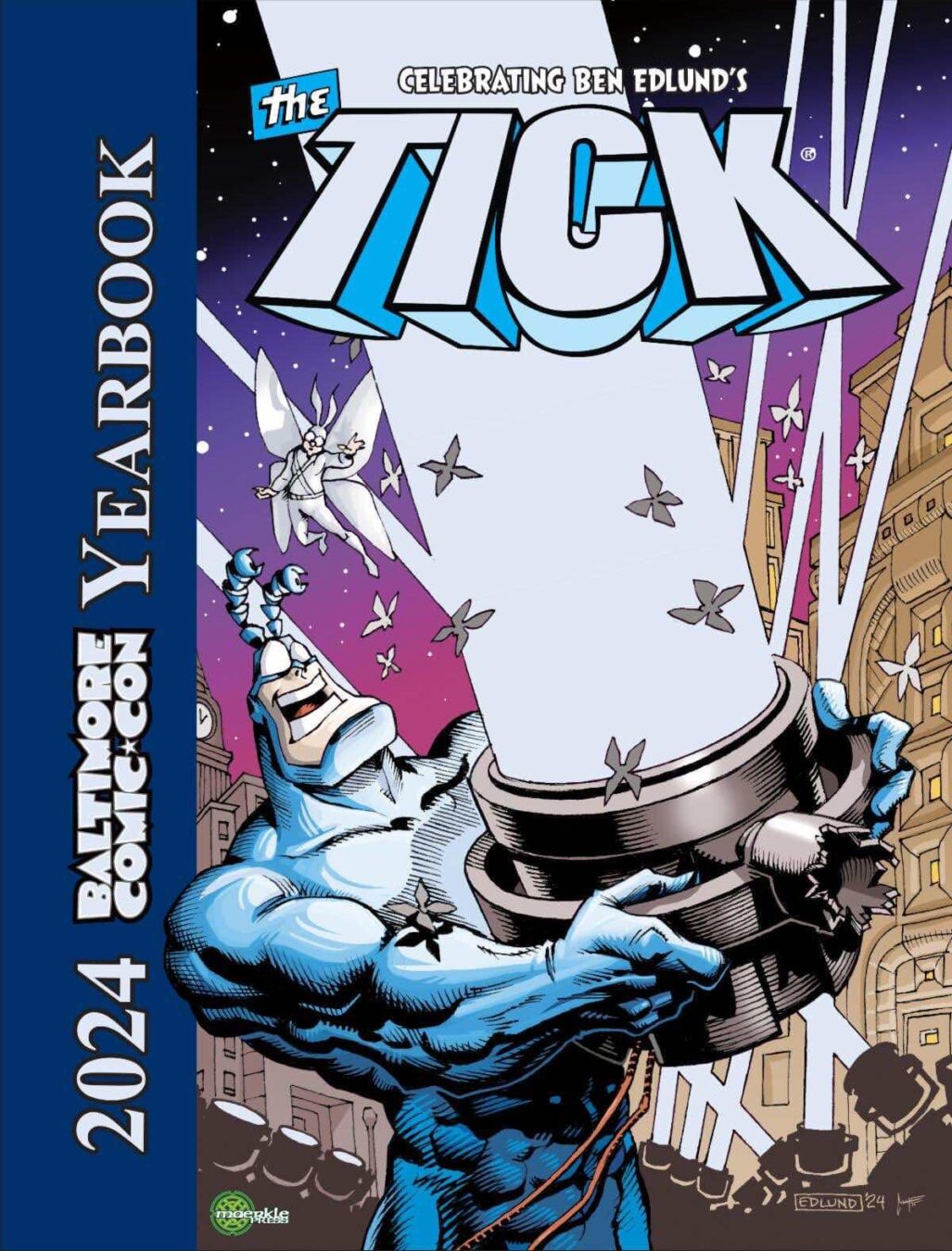 Writer/producer Ben Edlund created The Tick in 1986 in New England Comics Newsletter 14. The character soon found a cult following in his eponymous 1988 comic book series, the beloved 1994 Fox Kids animated series, and two live-action series, in 2001 on Fox and 2016 on Amazon Prime. Edlund and The Tick are being celebrated by the 2024 Baltimore Comic-Con, where Edlund is the show’s featured Guest of Honor.
