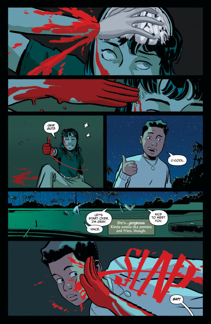 The Nights comic book series launched at Image Comics in 2024 to critical acclaim, with the first twelve-issue story arc titled, “Season One.” Nights Vol. 1 which collects “Part One” of the series, Nights #1-6, is available now at comic book shops, independent bookstores, Amazon, Barnes & Noble, Books-a-Million, Indigo, and Waterstones, and across many digital platforms. Nights Vol. 2, collecting Nights #6-12, will be released in comic book shops on Wednesday, February 26, 2025, and in bookstores on March 11, 2025. The Season One finale issue, Nights #12, is now also available at comic book shops, and the Season Two premiere issue, Nights #13, will be available at comic book shops on Wednesday, February 26. Nights is available across many digital platforms, including Amazon Kindle, Apple Books, and Google Play.