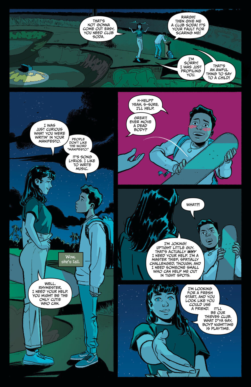 “Nights isn’t the type of comic you read and say ‘oh neat, cool art, good story’ and then put back on the shelf with all the other comics that have cool art and good stories. Nights is a generational experience in the making,” said Alexei Bochenek, Creative Director at Titmouse. “Reading it reminds me of when I used to stay up late watching FLCL at midnight on Toonami, having my mind blown not just by how dynamic it was, but by how seen it made me feel, a mirror to my whole self, good and bad, dreams and fears. If you know you know. I want to bring that feeling back to the animation fans like me who have been chasing it ever since, and introduce a whole new audience to the experience of discovering themselves through a new show that they feel seen by and become huge champions of, too. That’s what Nights is.”