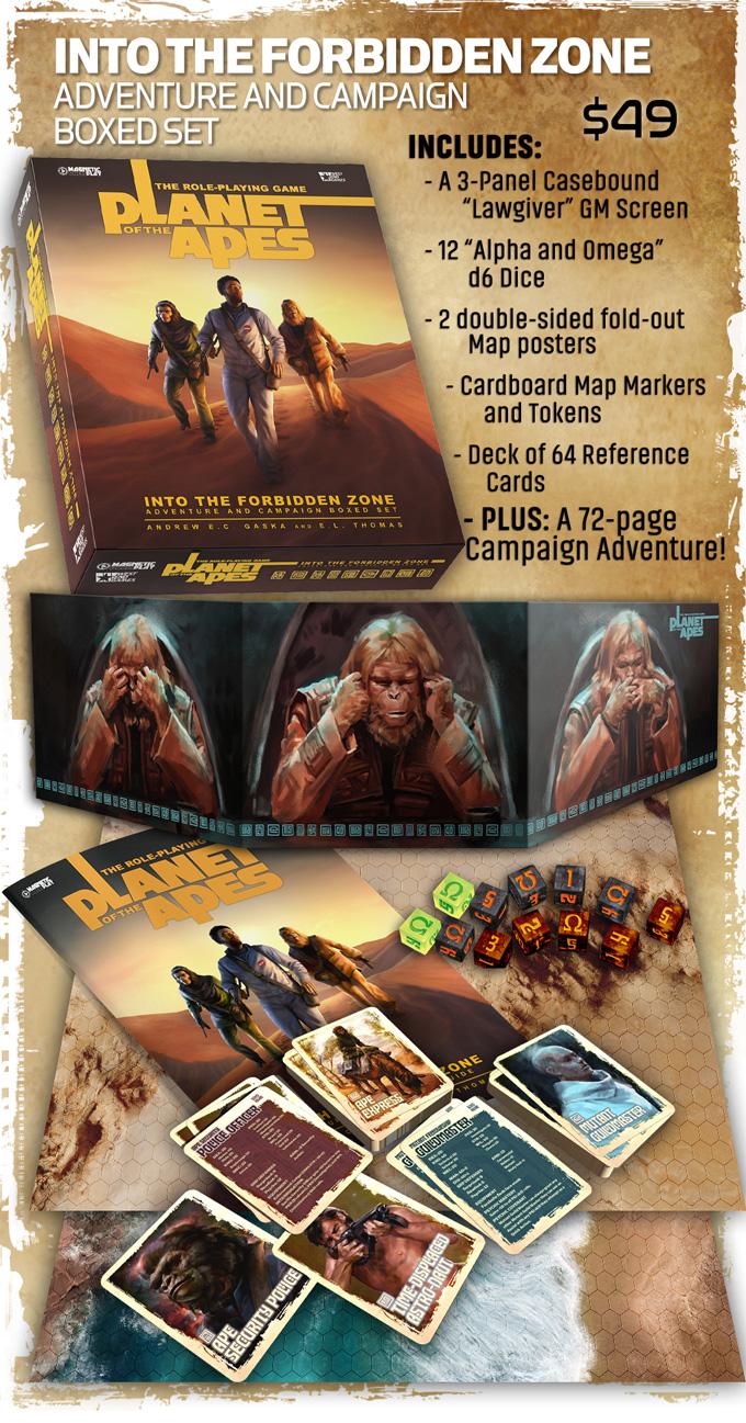 PLANET OF THE APES: THE ROLE-PLAYING GAME is now available for pre-order with numerous incentives and bonus items available only through this event, including exclusive gaming materials, miniature gameplay piece sets, physical in-world artifacts to assist role play, and other bonus enhancements that will only be available only with pre-orders.