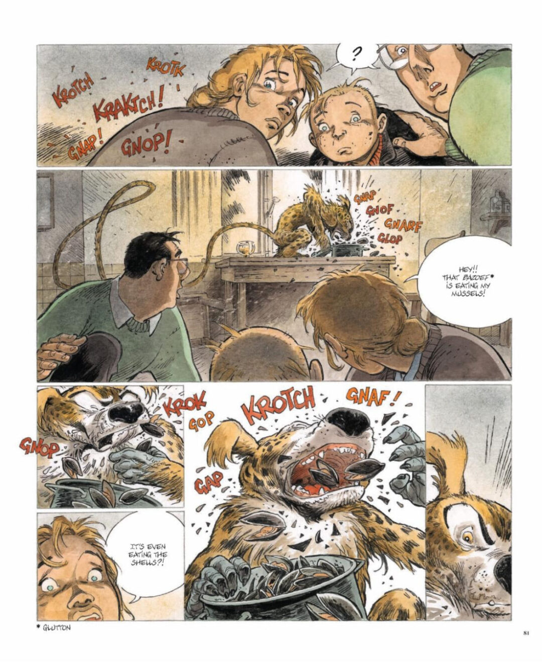 “This sometimes dark but always hopeful adventure by renowned author Zidrou and celebrated gallery artist Frank Pé portrays a beautiful friendship between a boy and his beast,” says Magnetic Press’ Director of Publishing, Mike Kennedy. “The authors pay a superb tribute to the fabulous animal created by Franquin in the series Spirou et Fantasio while denouncing the mistreatment and trafficking of exotic animals. A magnificent adventure whose heart is the extraordinary friendship that can unite a child with an animal.”