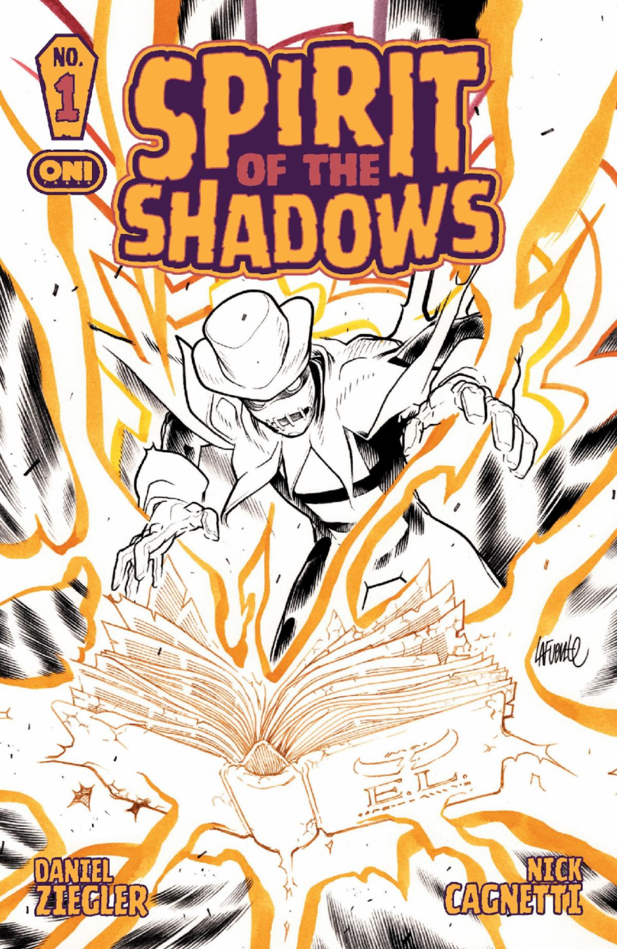 Oni Press, the multiple Eisner and Harvey Award-winning publisher of groundbreaking comics and graphic novels since 1997, invites readers into a spectacularly terrifying new vision of the underworld in this extended excerpt from SPIRIT OF THE SHADOWS #1, the arresting new limited series from the phantasmagorical minds of breakout cartoonist Nick Cagnetti (Pink Lemonade, XINO) and Daniel Ziegler (Elodie). Arriving in comic shops on January 28th, SPIRIT OF THE SHADOWS #1 features the first full-length artwork by Nick Cagnetti since his extraordinary debut with 2022’s PINK LEMONADE.