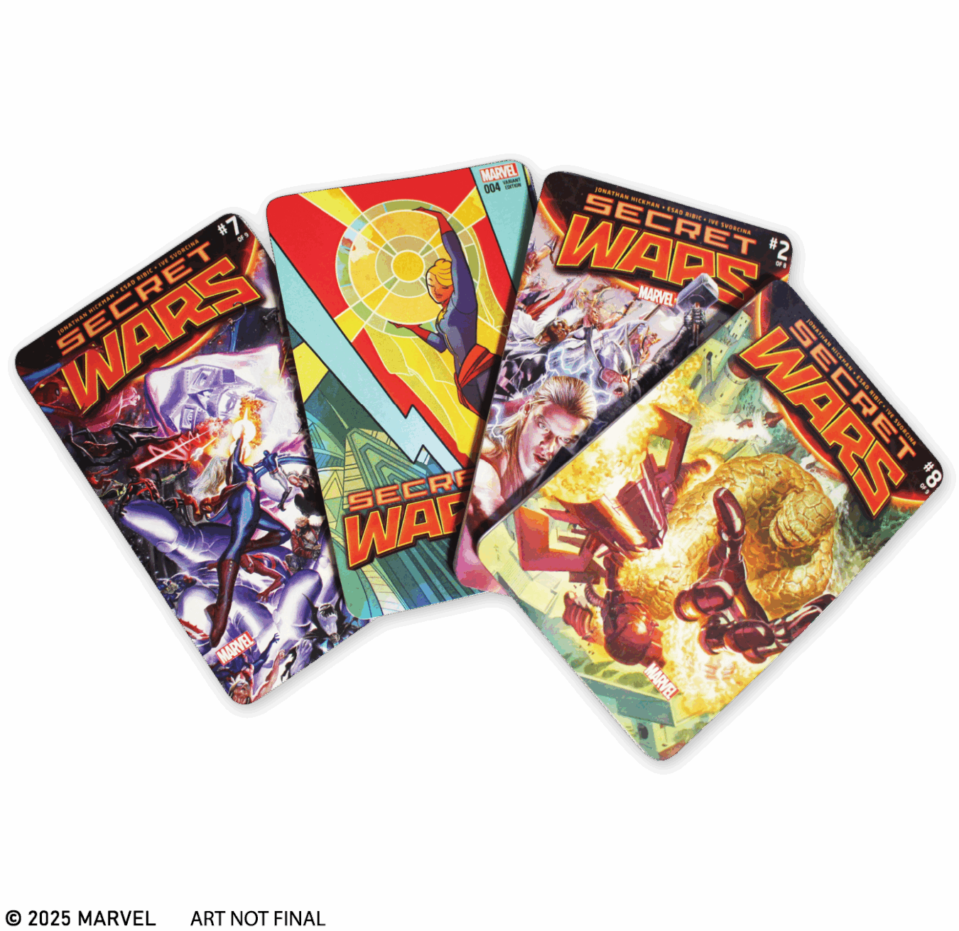 Written by Ellie Pyle, Marvel: Behind The Panels Of Secret Wars takes a deep dive into the secrets that shaped the groundbreaking 2015 crossover event, one of the most important stories in Marvel history, compiling tales from creative summits and planning sessions, wild pitches that never saw print, first looks at new character designs, and much more. Measuring 11.7”x16.5” and showcasing hundreds of gorgeous illustrations, this 300-page deluxe hardcover features meaningful insights from creators including Jonathan Hickman and Esad Ribić (Secret Wars), Jason Aaron (Thors and Weirdworld), Keiran Gillen (Siege and 1602: Witch Hunter Angela), Gerry Duggan (Infinity Gauntlet, 1782, and Mrs. Deadpool and the Howling Commandos), and Tom Brevoort (Vice President and Executive Editor, Marvel Comics).