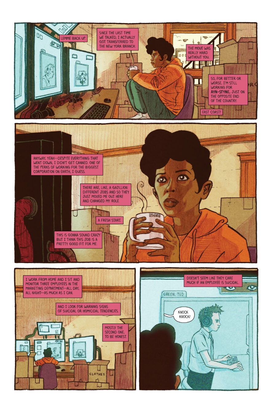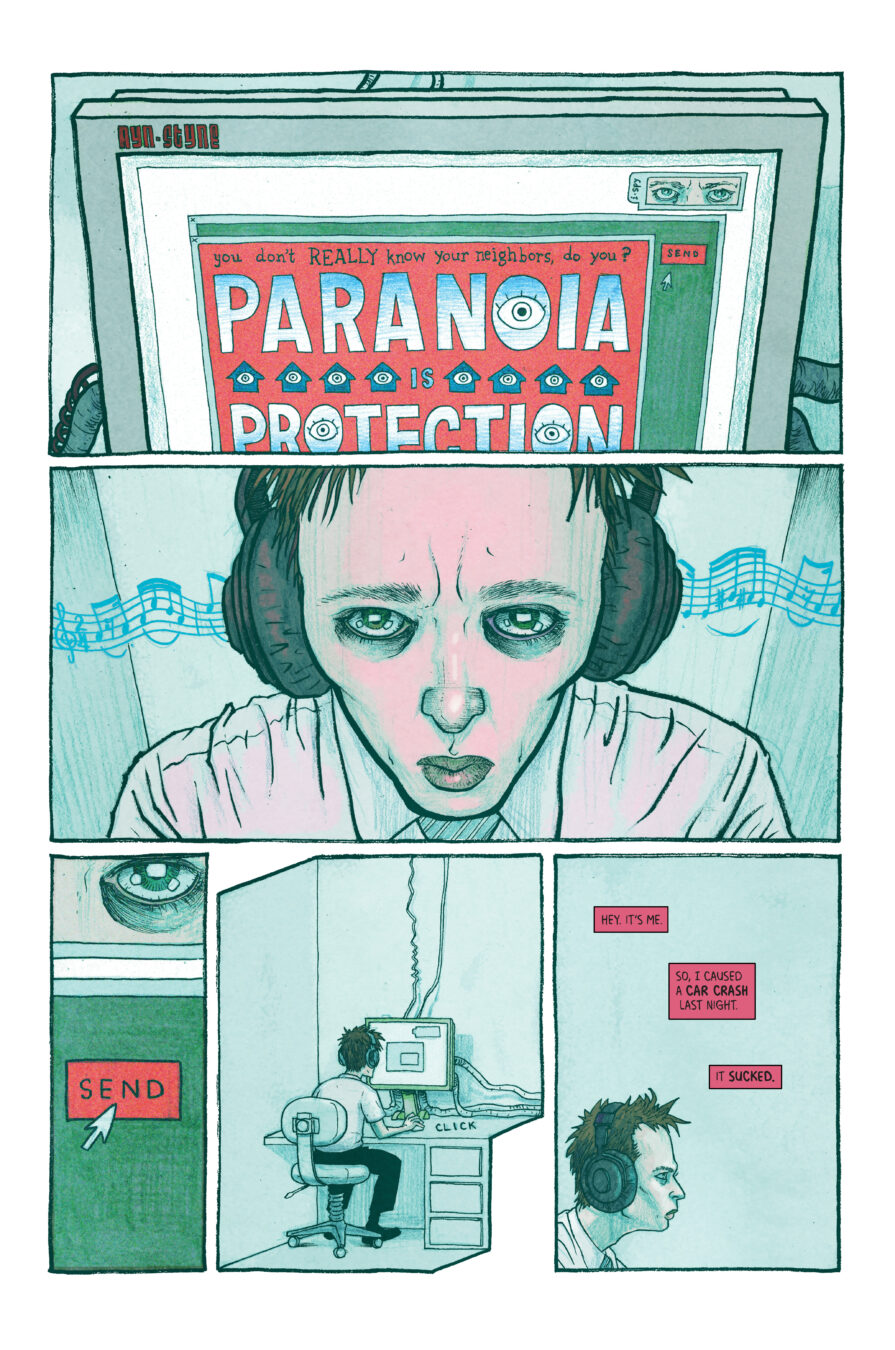 Is Ted OK? unfolds as a spectacularly unpredictable yarn—each issue widening the lens, escalating the stakes, and shattering the scope of the issue before it, all without losing its beating heart: the search for human connection in an oppressive, paranoid world.