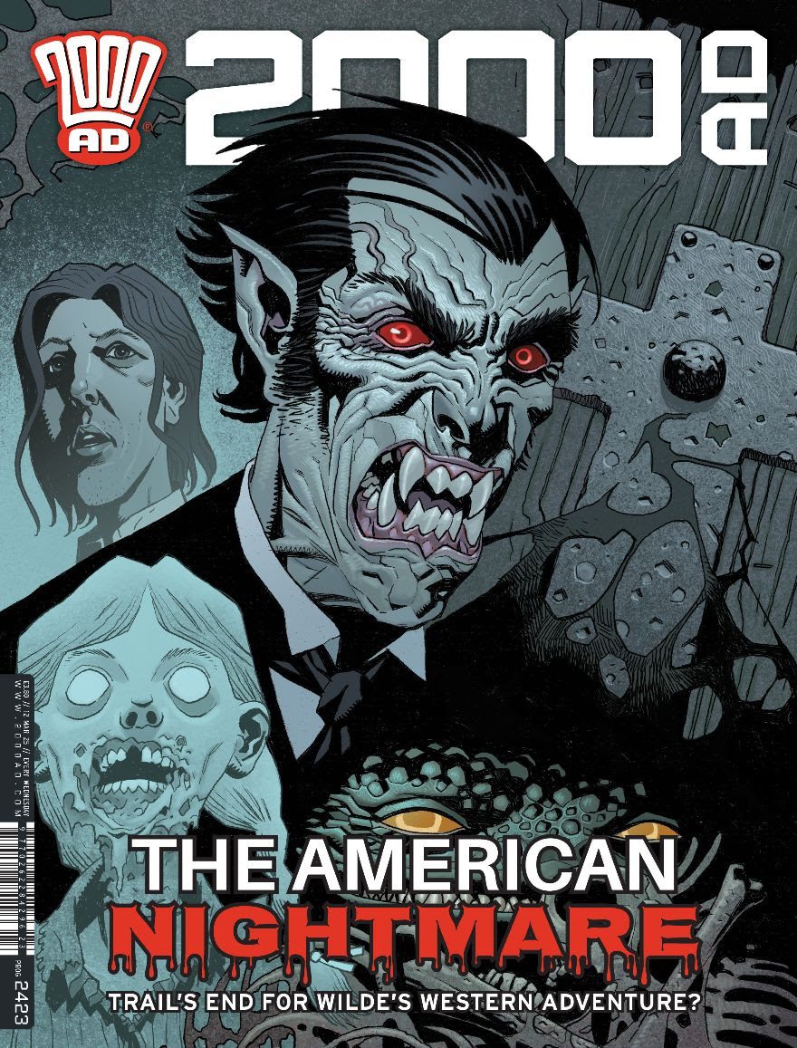 Incredible SF action from the Eisner-nominated UK anthology! Dredd must escape a terrifying parallel realm in “The Shift” by Ken Niemand and Nick Percival; Full Tilt Boogie by Alex De Campi & Eduardo Ocana, Fiends of the Western Front: Wilde West by Ian Edginton & Tiernen Trevallion and more…. all come to their explosive finales!