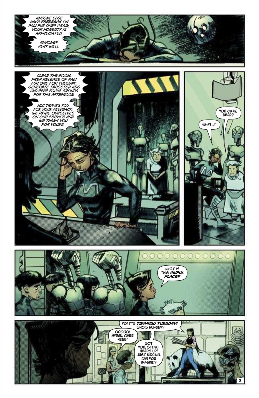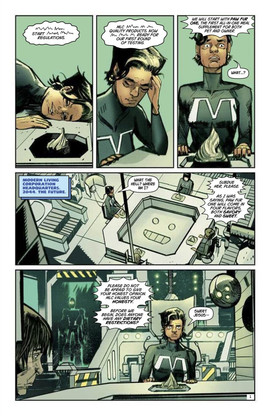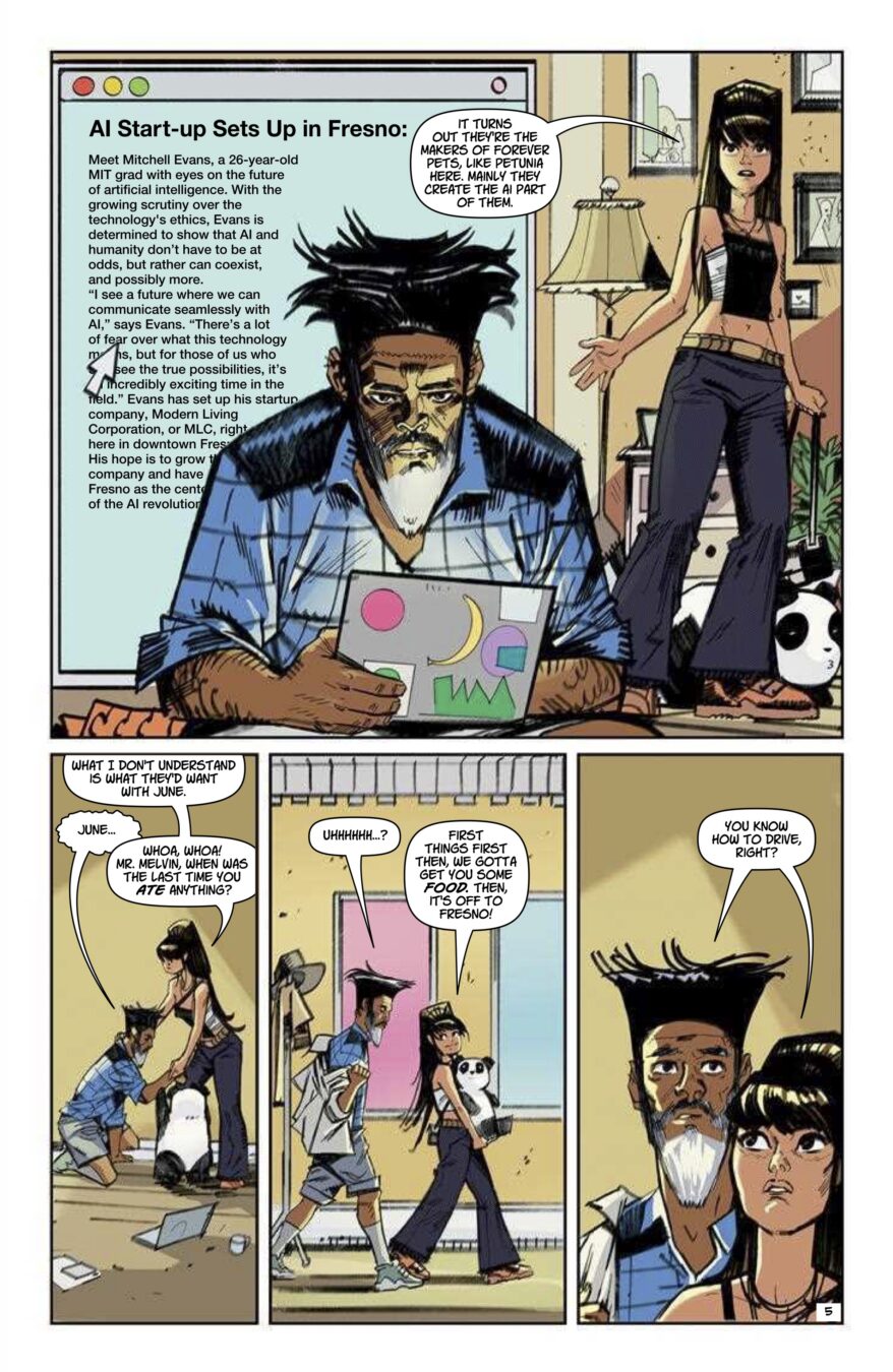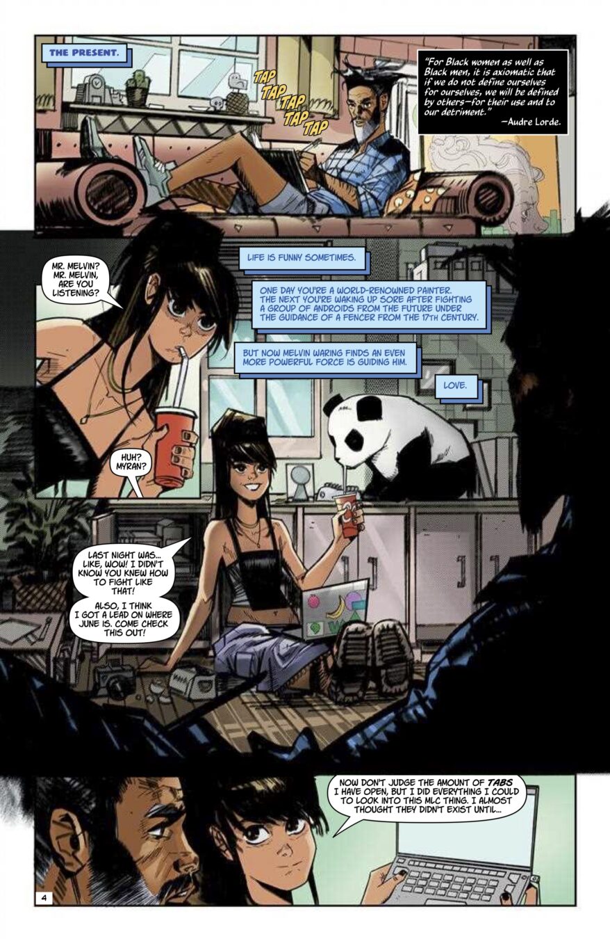 Painter Melvin Waring sets out to find his missing wife June—armed with the literal power of Black history, and aided by a smart but awkward teenage friend. But the futuristic Modern Living Corporation has other plans for June. By Jordan Clark (Aquaman) and Atagun İlhan (Poison Ivy).