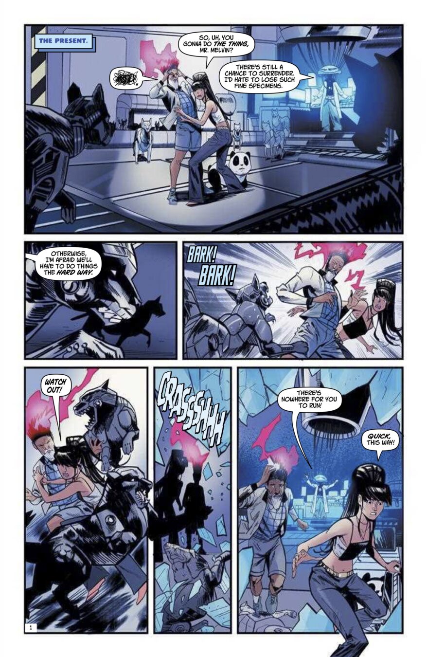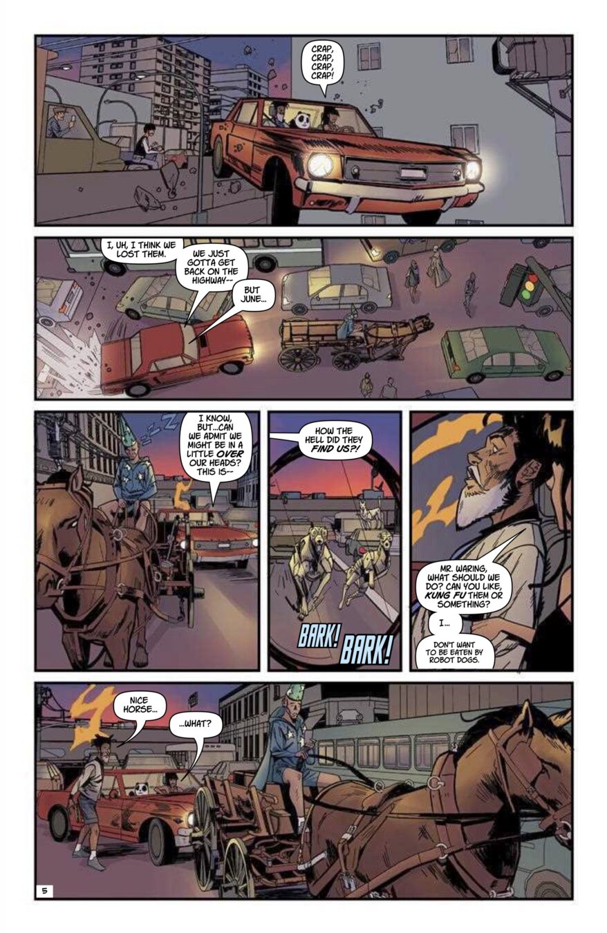 Besieged by robot dogs, Melvin Warring must use his still-new powers to call on Bill Pickett, turn-of-the-century Black rodeo hero, for help! Meanwhile, in the future, his wife June comes face to face with her captors at last. “It’s SINNERS meets QUANTUM LEAP,” raves writer Steve Orlando, and we think you’ll agree.