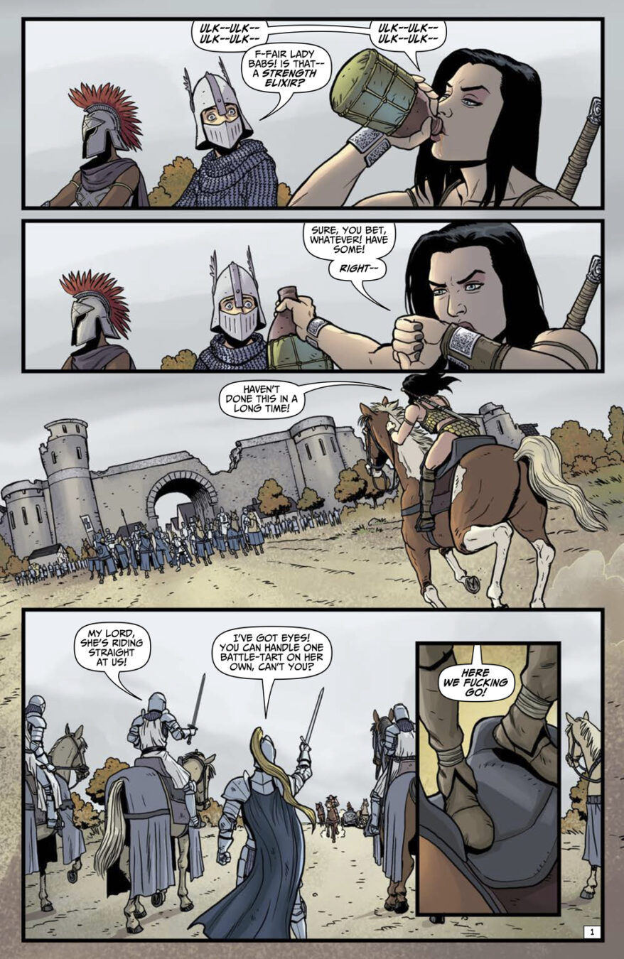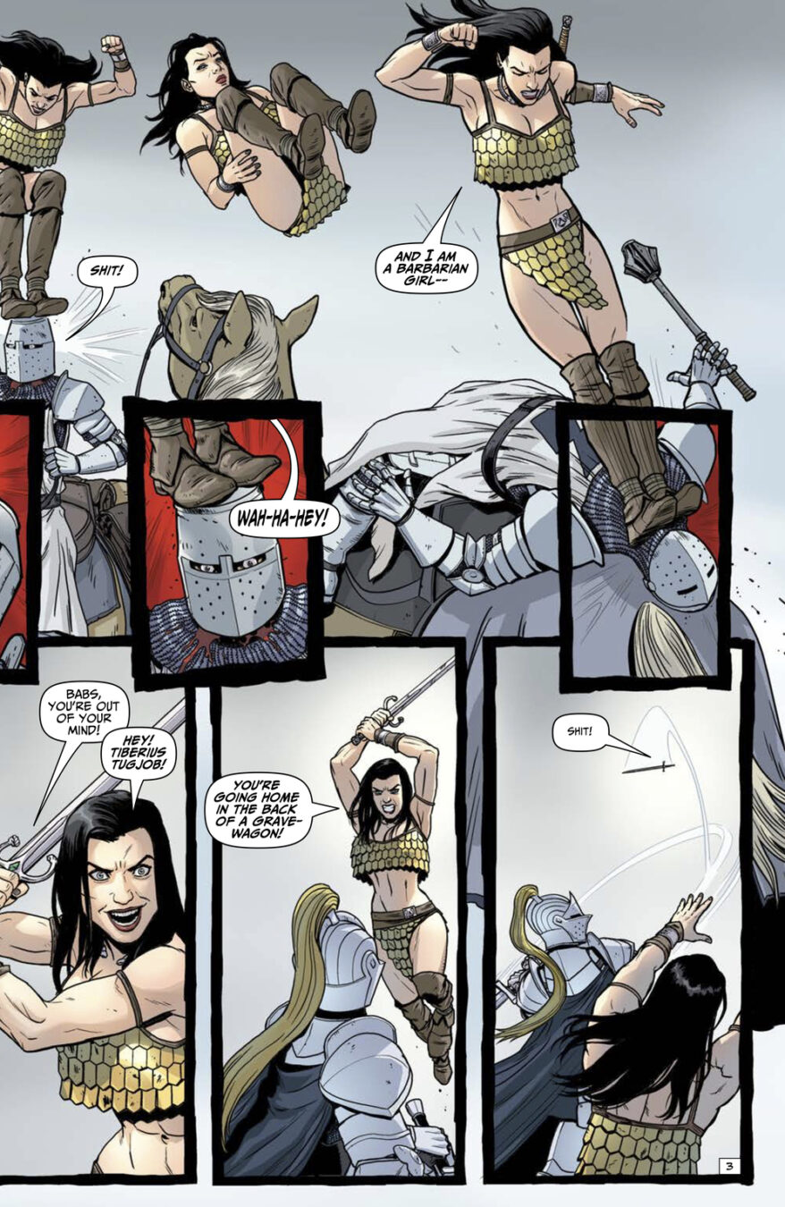 Fists! Swords! Blood and eyeballs! The hit series by Ennis (The Boys) and Burrows (Get Fury) concludes with Babs locked in final combat against Lord Tiberius and his horde of White Knights! Will somebody’s janky nasty bits play a decisive role in the ultimate battle? What do you think?