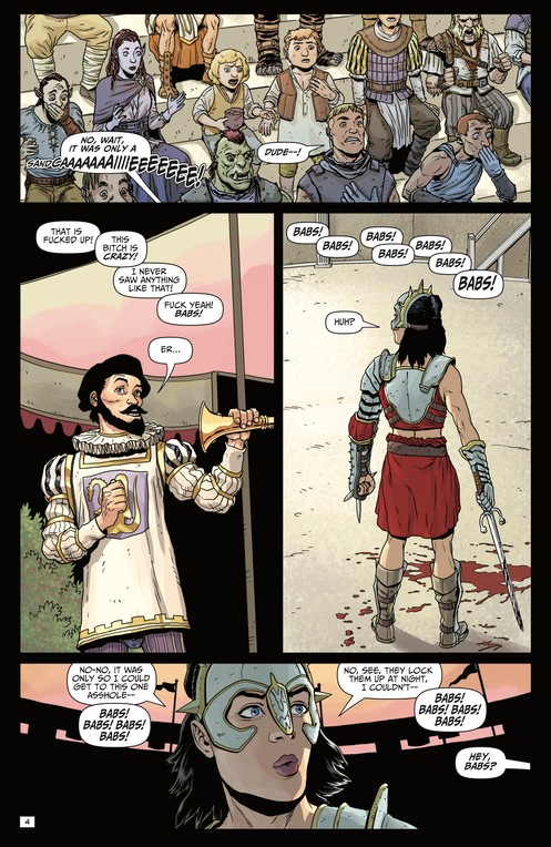 “BABS is sharp, subversive, hilarious, and absolutely one of the best comics of 2024,” said CBR—and now the hit Ennis/Burrows sword-and-sorcery satire returns! A day of over-the-top carnage in a gladiator arena leads Babs and her partner-in-barbarism Izzy directly into a strange, unfamiliar, bizarre situation: they actually have money! That’s good, right? Wrong—because it’s about to lead them down a dark, horrific road to the devastated wasteland of Mordynn.