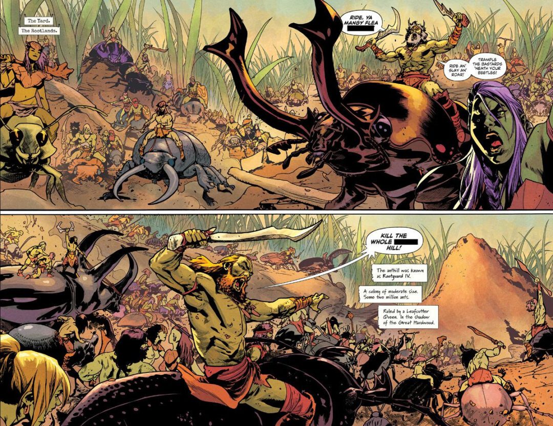 Image Comics is pleased to reveal a first look at the upcoming new series Bug Wars by bestselling writer Jason Aaron (Southern Bastards, Teenage Mutant Ninja Turtles, Absolute Superman) and artist Mahmud Asrar (Conan the Barbarian, X-Men, Batman vs Robin). This sneak peek into the savage, epic new series showcases the action-packed brutality in store for readers when they pick up the extra-length first issue hitting shelves in February from Image Comics.