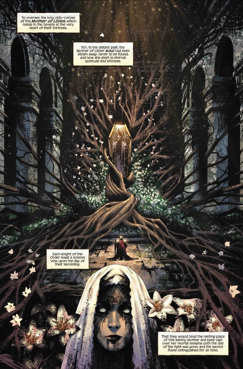 Hope is a fleeting feeling for the Knights of Mourning. But the knightly order are willing to bet everything on their last chance of salvation. In search of a hero to rekindle the flame, these knights turn to the Mother of Lillies, a soulless mummified saint with legends about her ability to restore balance to the world. The knights believe that her lost soul will resurrect her and bring them their soughtafter champion to guide them to solace. But madness looms in every knight’s mind and this long-awaited goal might not be what it once seemed…