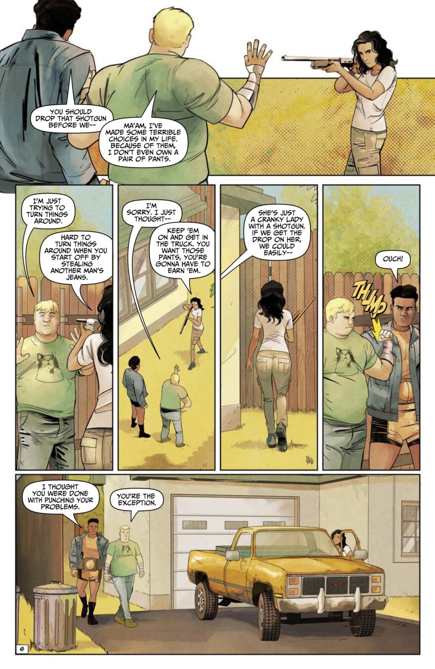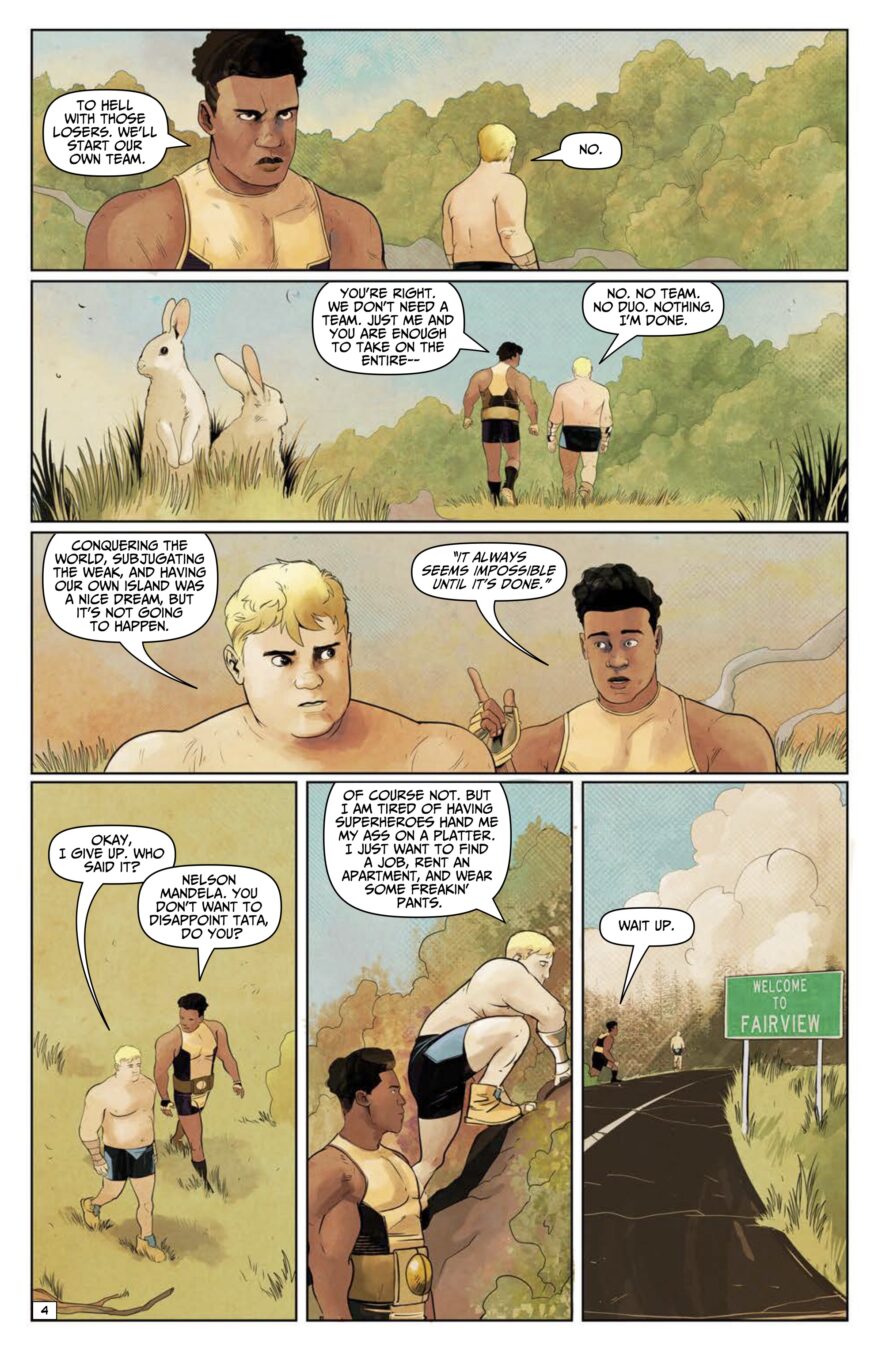 Is there life after supervillainy? Ask Jerry and Clarence, two hapless ex-henchmen trying to make their way in the world—and maybe find a decent pair of pants. A super hero buddy comedy that takes a hard look at what happens after the fight, when the villains are tired of being villains and the heroes aren’t as heroic as they seem. Written by Tyrone Finch (Swine, Station 19) and gorgeously drawn by Sebastián Piriz (We Ride Titans).