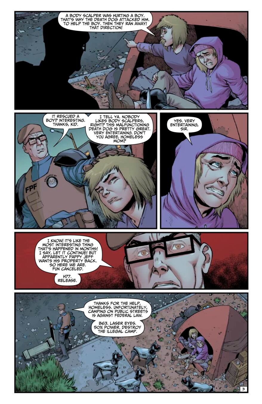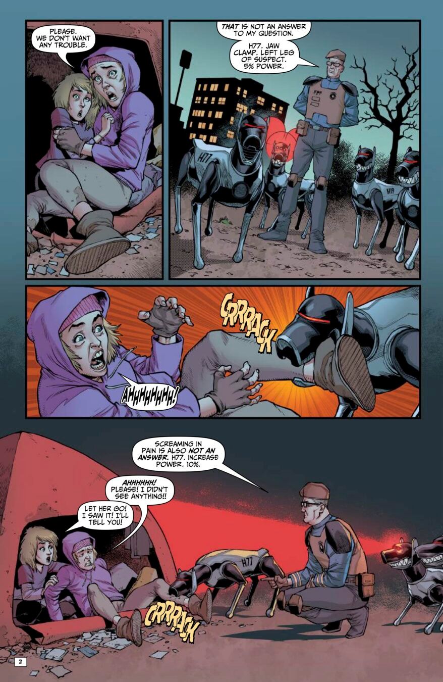 Concluding the touching pilot story of Wyatt, a near-future street kid, and Dog, a police robot-dog programmed to execute suspects on the street. Now the malfunctioning Dog protects Wyatt as he trespasses into a wealthy, gated community for a heartbreaking encounter.
