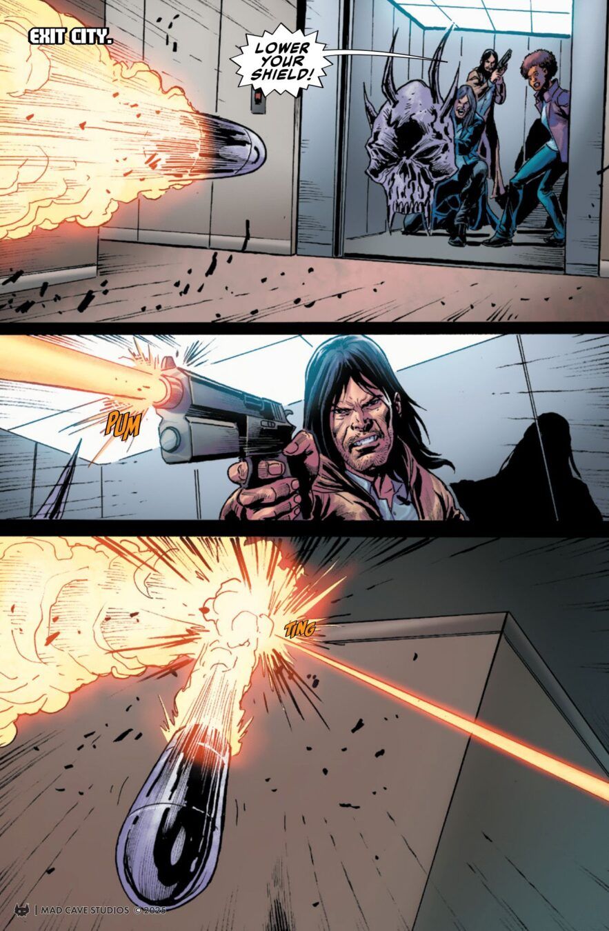 Detectives McCORMICK & MILLER, joined by the monster hunter OWEN BLACKWOOD, have two priorities: tracking down a runaway hacker and destroying a deadly mystical artifact. But they’re hounded by heavily-armed mercenaries serving evil tech billionaire AXEL BLACK! Only one woman can save their skins as the rogue assassin VELVETEEN enters the fray!