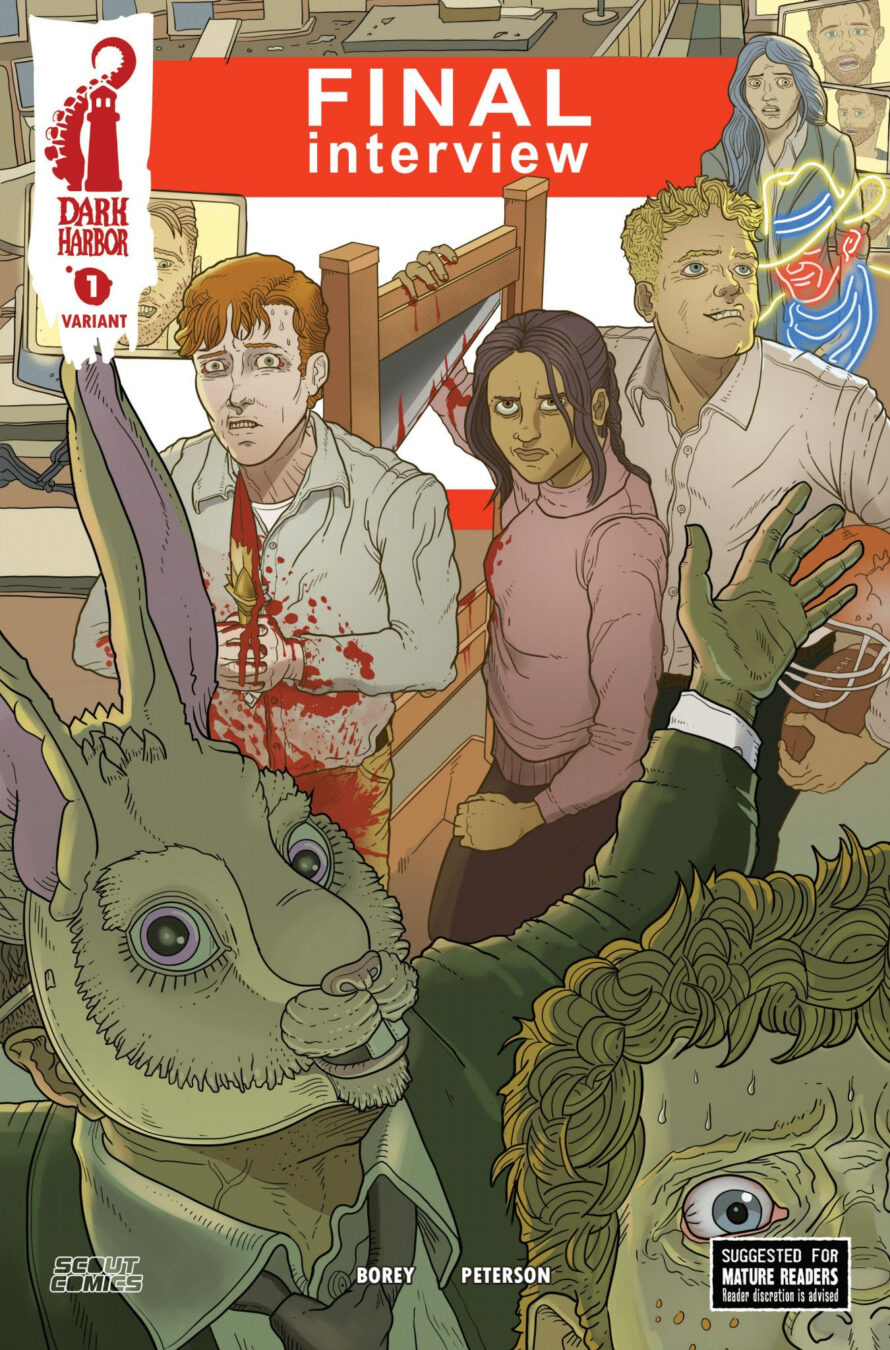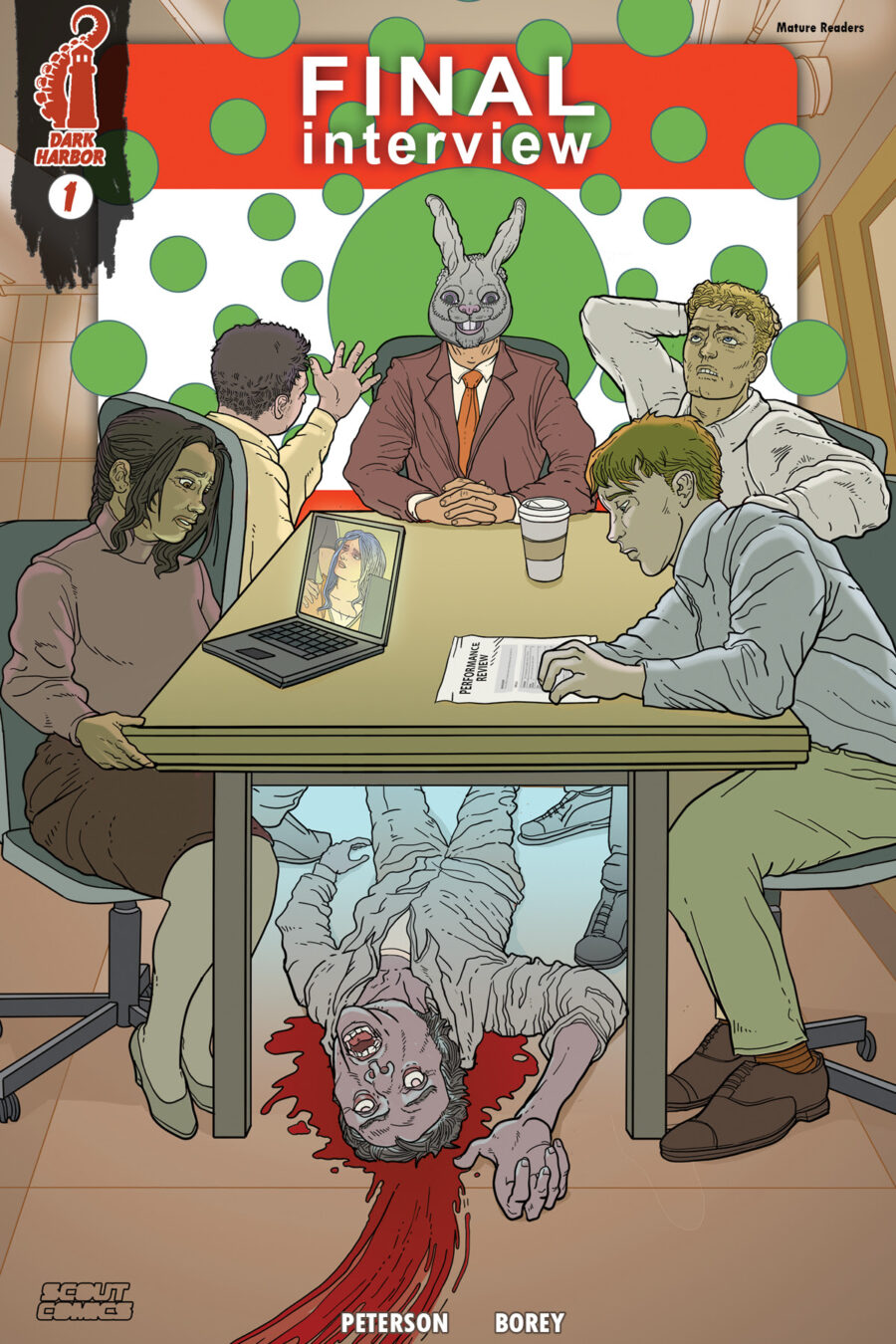 Two forces of modern evil square off when frenzied terrorists invade the high-tech HQ of Lifeway, a corrupt and near-omnipotent corporation. On the day of the attack, four very different employees, thrown together by chance, are merely trying to survive. But their escape attempts only lead them deeper into the labyrinth of Lifeway’s secrets, and to a terrible choice that will direct the course of world events. FINAL INTERVIEW is a corporate horror thriller developed by Edward Nguyen Borey (screenwriter of “Boss Level,” on Hulu) and Lou Peterson (designer/artist).