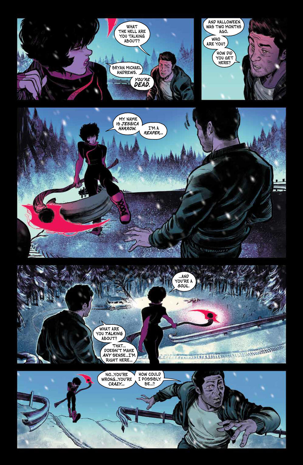 Discover the world of the afterlife, where Jessica has been recruited as a Reaper, tasked with ferrying countless souls to their final destination. But unlike the rest of the Reapers, she has no memory of what killed her and put her into this predicament. In order to unravel the mystery of her own demise, she’ll have to solve an even bigger one – where is the actual GRIM REAPER? From acclaimed writer Stephanie Phillips (Harley Quinn) and fan favorite artist Flaviano (New Mutants) comes a bold new vision of what comes after, and the nature of death itself!
