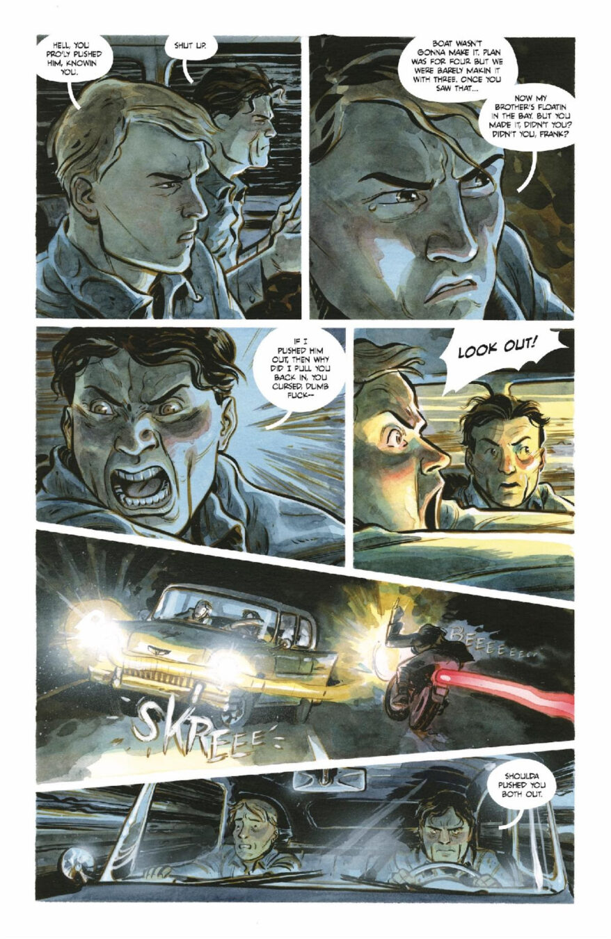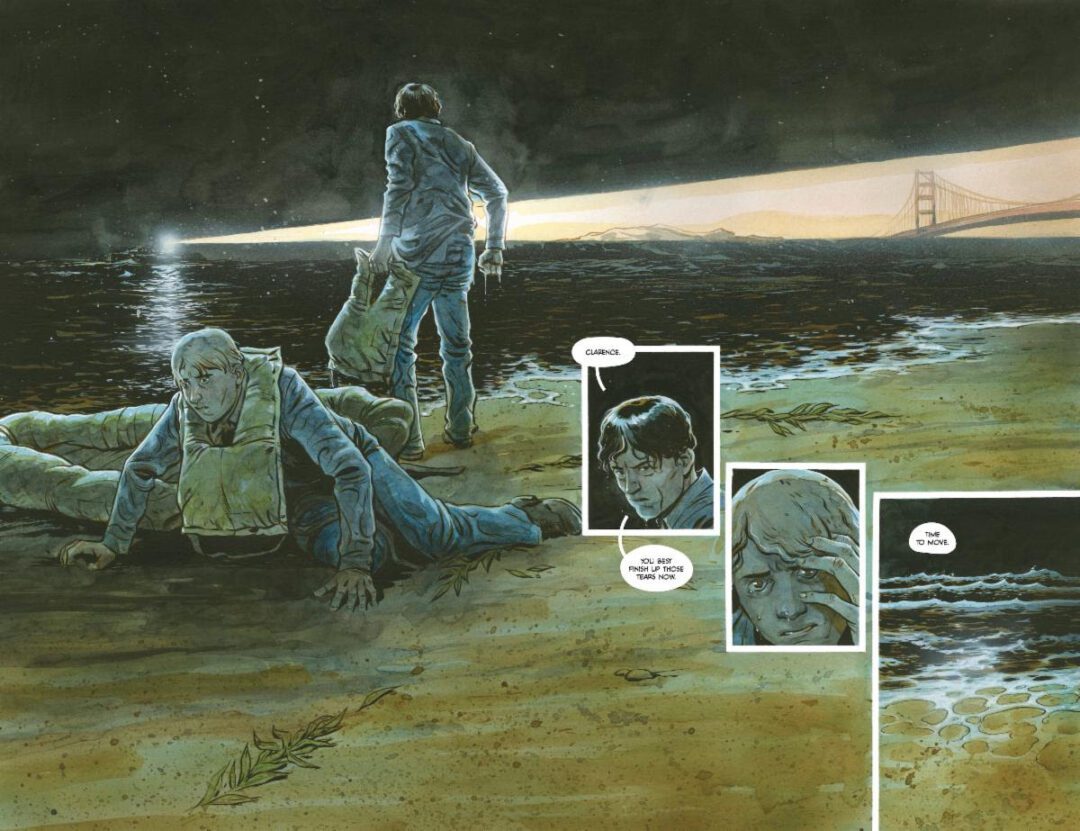Hitting comic shops everywhere on March 19th, the relentlessly paced and visually breathtaking original limited series was born from one of the greatest unsolved mysteries of the 20th century: Did anyone ever escape from Alcatraz …  and live to tell the tale? Discover the answers in this  taut, five-issue American odyssey as it follows history’s most notorious fugitives in a desperate race for freedom through the California countryside … and  leaves a trail of wreckage, bodies, and painful revelations in their wake.