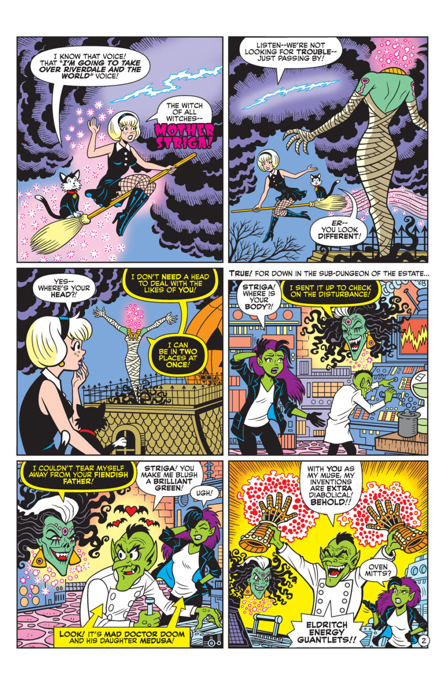 Now packed with 30 PAGES of story content, including a BRAND-NEW STORY! Sabrina’s greatest foe, the evil witch Mother Striga, is back and this time she’s enlisted the aid of the wicked scientist Mad Doc Doom and his daughter Medusa! Will the powers of science be too much for Sabrina’s magic, and who can she turn to for help? Plus, a SPECIAL COLLECTOR’S EDITION VARIANT COVER featuring the art from the very first appearance of Sabrina in comics!