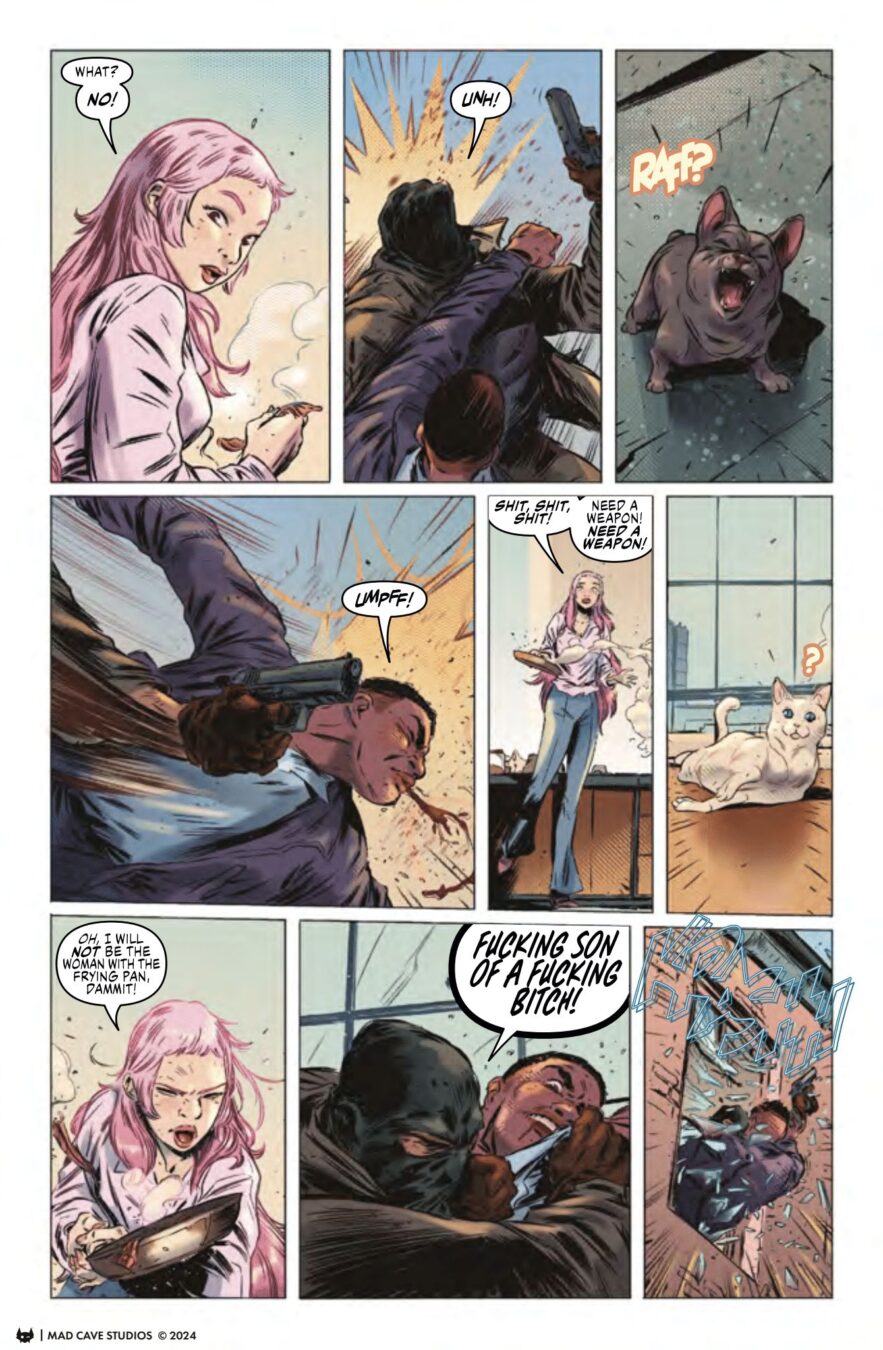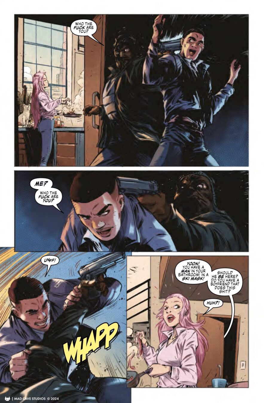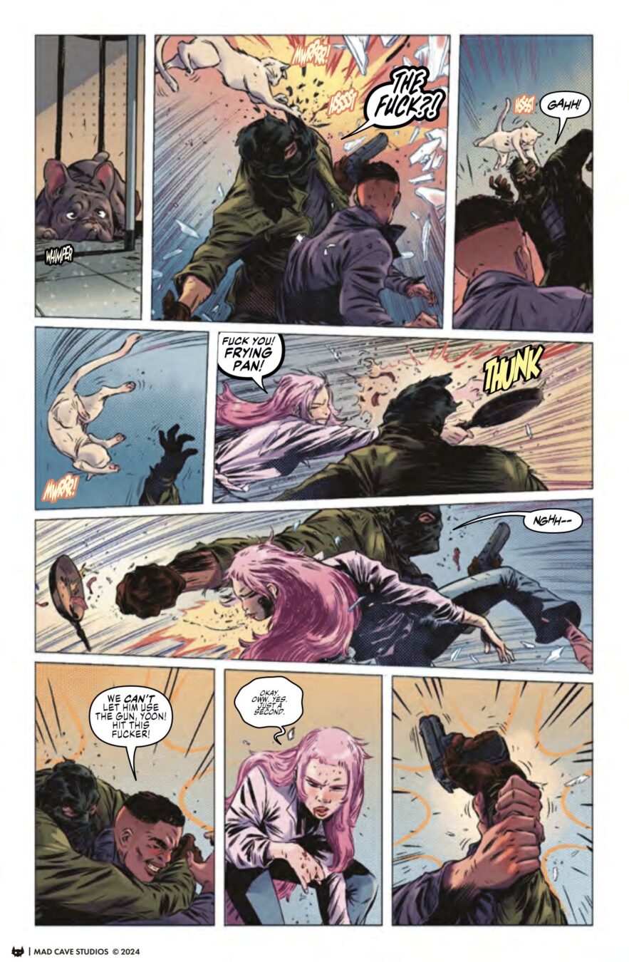 Yoon’s frantic 24-hour search on whether she’s going to be a murderer or a murder victim ramps up into even higher gear! A confrontation! A frying pan! An adult actress with some of the best sandwiches in the city! Tension between Yoon and Luke. A murderer uncovered and Yoon venturing into the heart of gang territory, as more strings, both blue and black, are revealed!