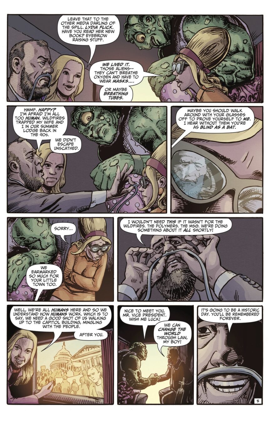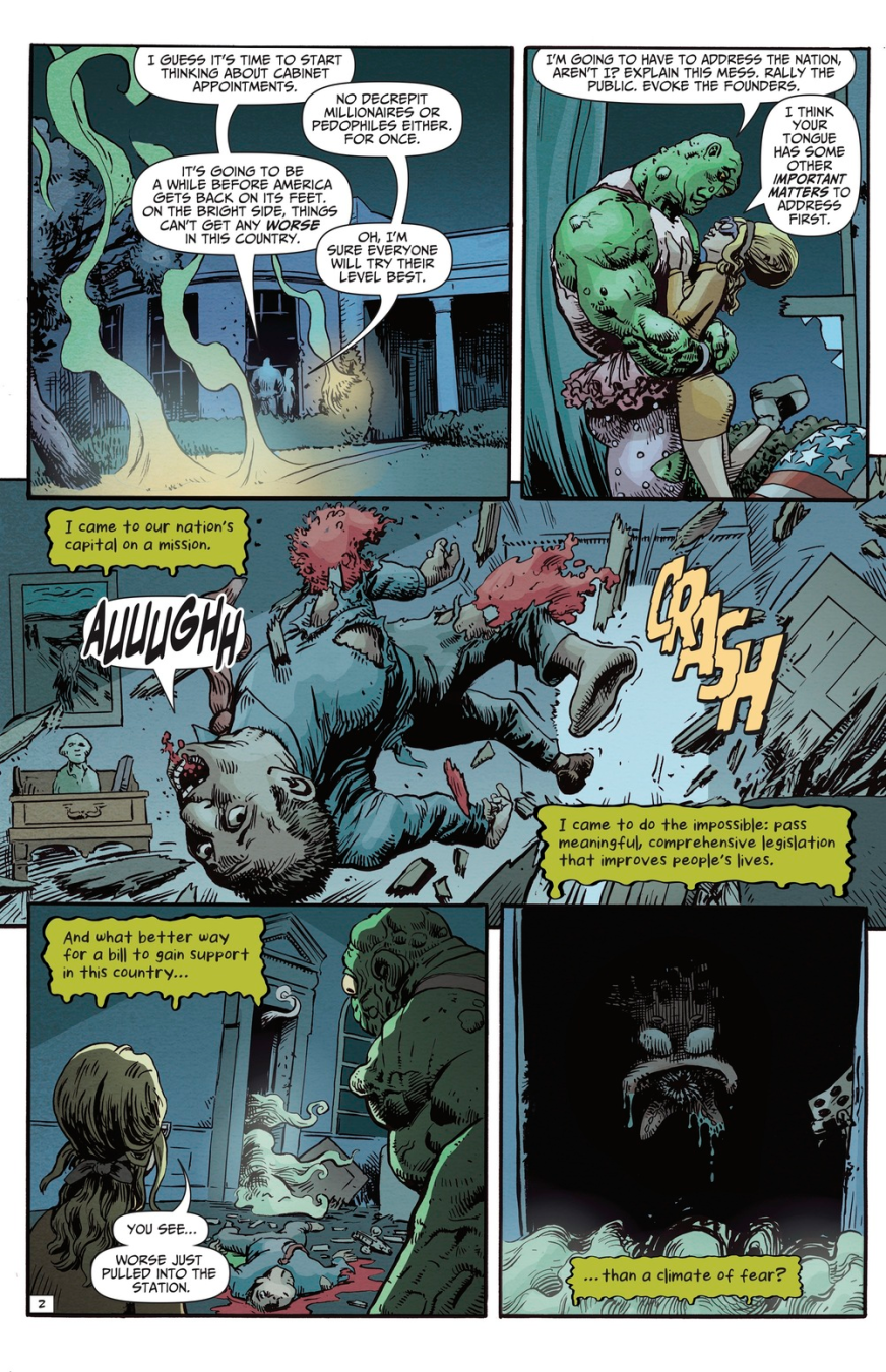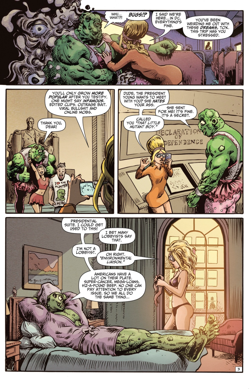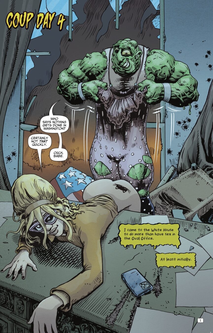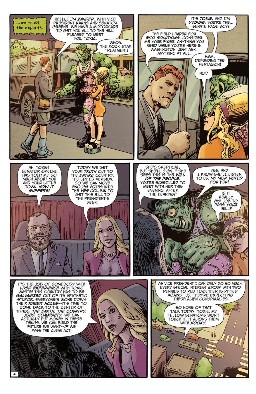 Beginning right here, right now the madness kicks off with a full-blown multi-issue Toxie saga that ain’t pulling a single punch. We’re talking conspiracy theories bubbling like toxic sludge, chaos exploding through the halls of Congress, and a full-on power struggle rocking the White House like a coup straight out of your worst midnight doomscroll. And guess who’s rolling into D.C. with a mop, a mission, and zero patience for corruption? Yeah… The Toxic Avenger is taking it to Washington!