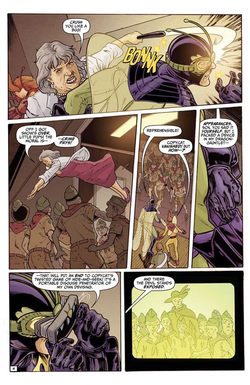 Conclusion of the only multiverse book you need! Copycat, that demonic dean of dastardly and difficult-to-detect disguises, escalates his crime spree—but a terrible tragedy has robbed Earth-Alpha’s caped crimefighters of their motivation to care.