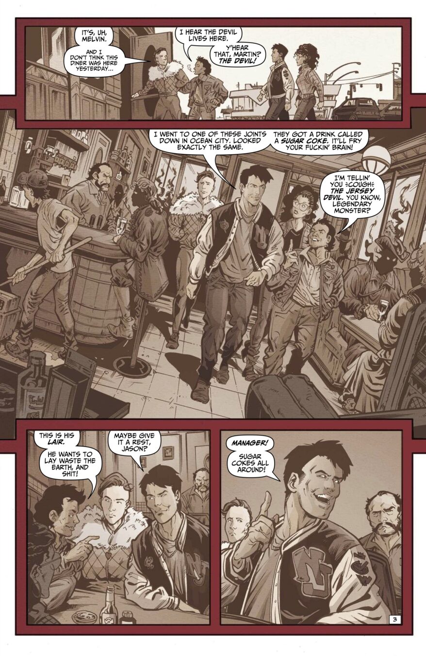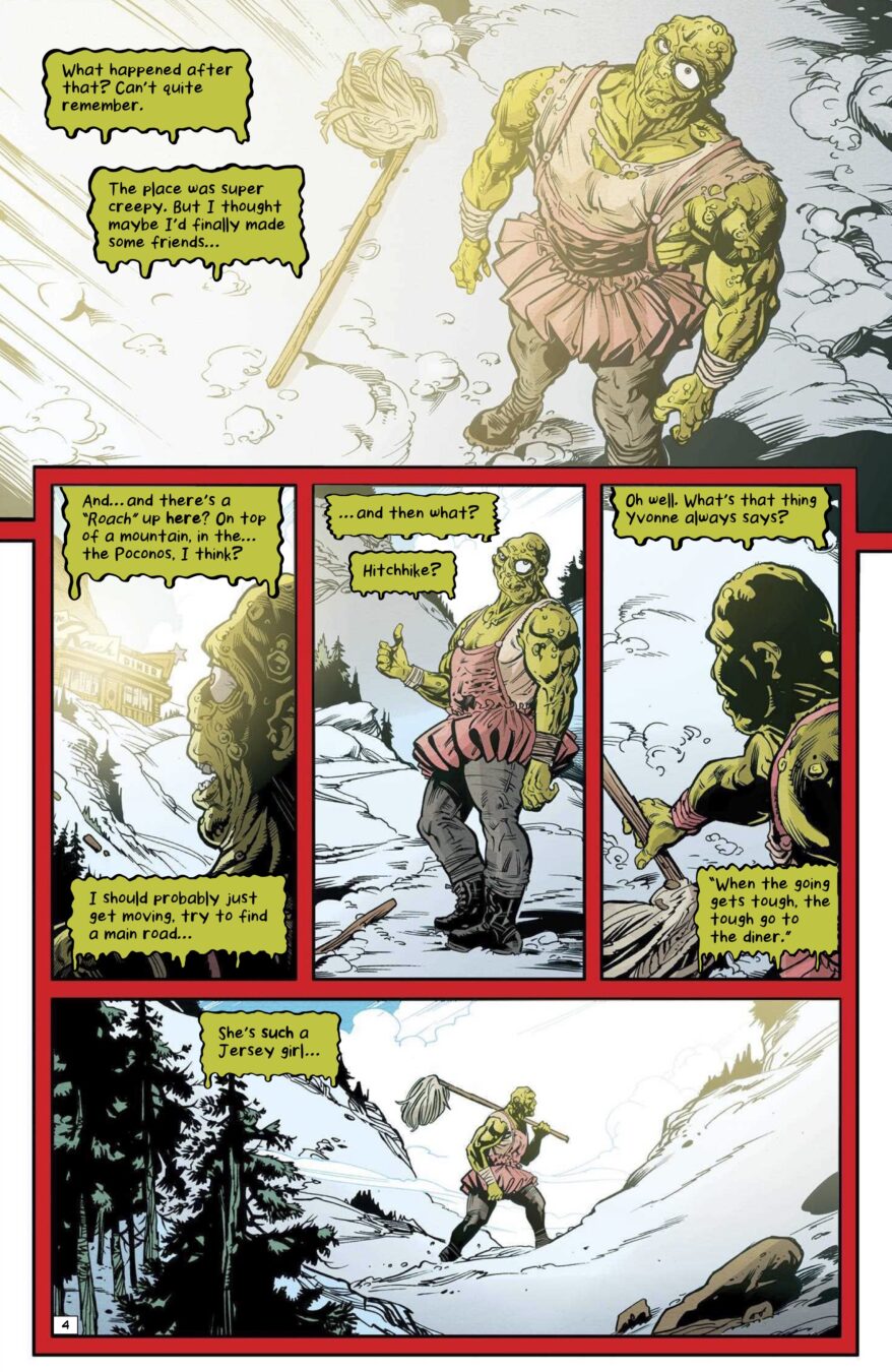 Continuing the Toxic Avenger’s tour of what we laughingly call the AHOY Universe! Following his meeting with Jesus Christ, the Avenger returns to his roots for an epic brawl with the Jersey Devil in—where else?—a sinister diner. Script by the Garden State’s own Stuart Moore (Captain America for Dummies) with art by midwestern interloper Ryan Kelly (Local, Dead Boy Detectives) and cover by master Toxie artist Fred Harper!