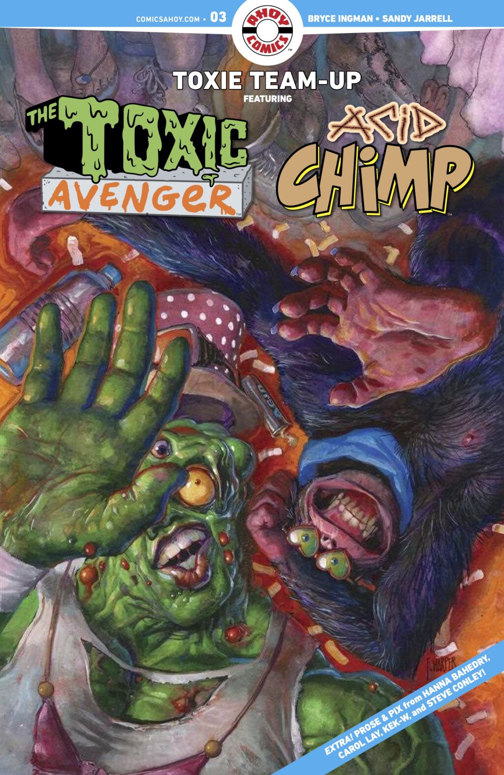 Acid Chimp—AHOY’s most cheerful character, who lives to splash corrosive acid on people—hits the Tromaville concert scene, where he collides with an acid-immune fellow music-lover, the Toxic Avenger himself! Will they destroy each other? Or will they instead team up against an evil concert-arena developer? What do YOU think?