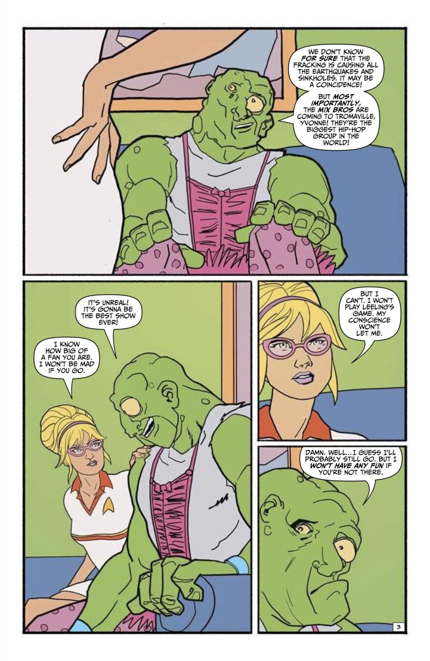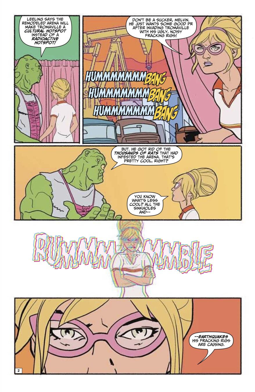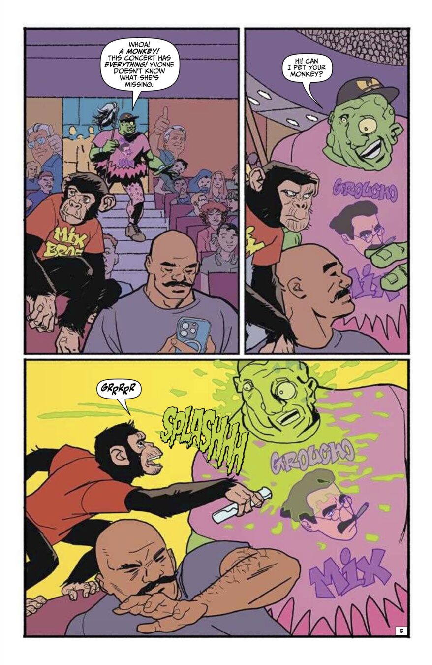 Acid Chimp—AHOY’s most cheerful character, who lives to splash corrosive acid on people—hits the Tromaville concert scene, where he collides with an acid-immune fellow music-lover, the Toxic Avenger himself! Will they destroy each other? Or will they instead team up against an evil concert-arena developer? What do YOU think?