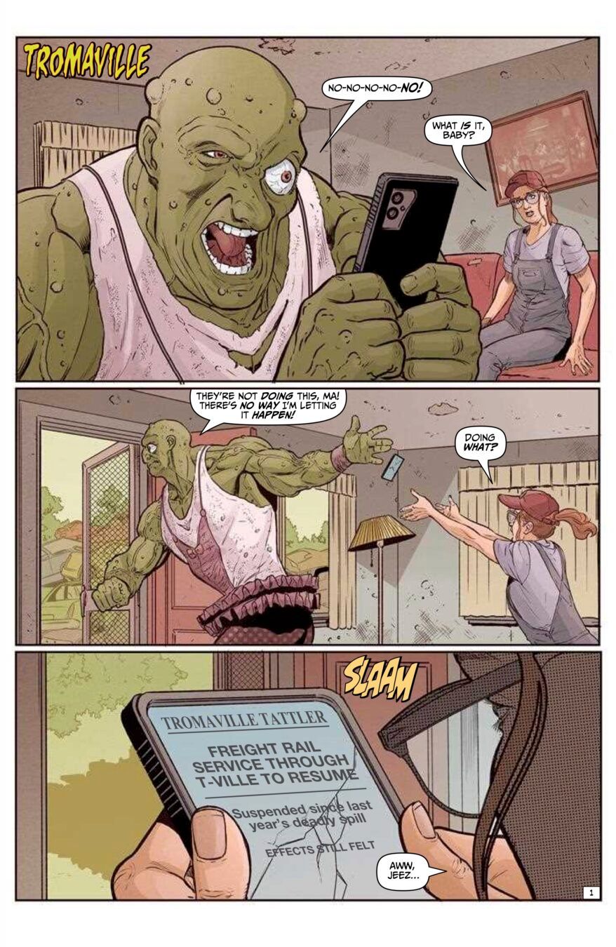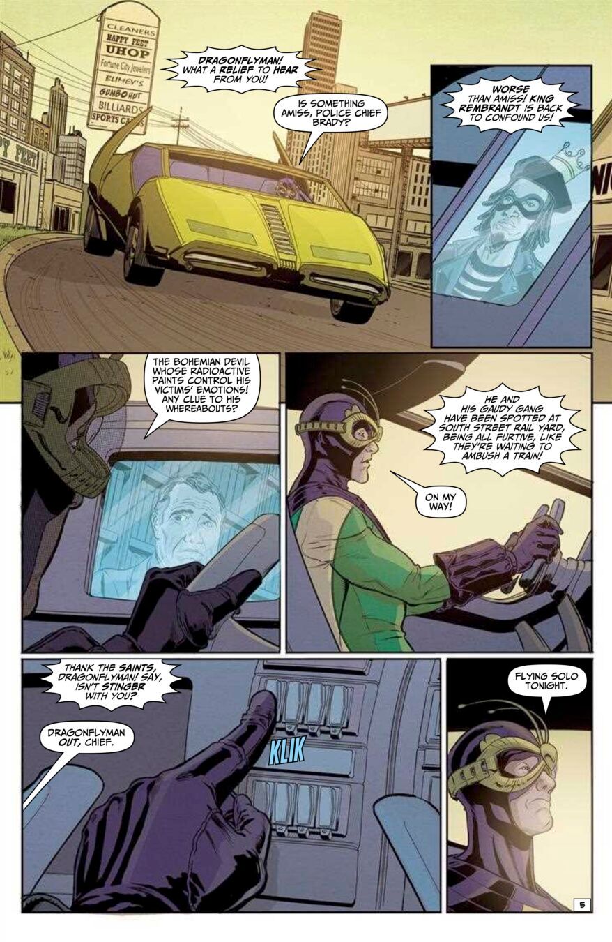 Teaming AHOY’s Toxic sensation with the heroes of the critically acclaimed THE WRONG EARTH, in an all-new story by the Wrong Earth creative team! With his sidekick away on a Young Pioneer retreat, Dragonflyman recruits a new partner-in-peril: the Toxic Avenger! Together they face the psychotropic villainy of art criminal King Rembrandt—and a police riot!