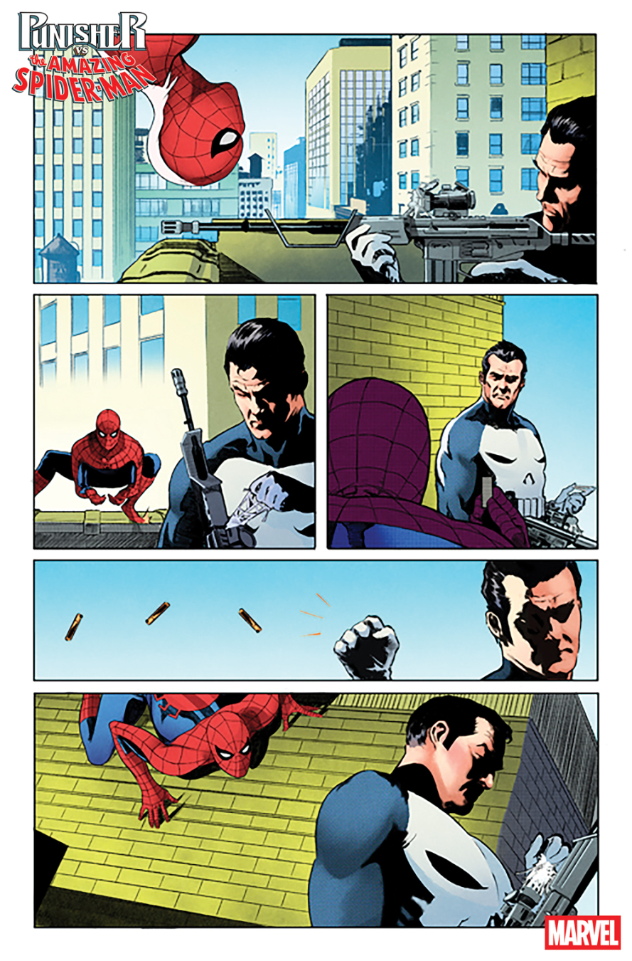 THE PUNISHER AND SPIDER-MAN, two of the most notorious names in New York City with very different approaches to making the Big Apple safer (or not, depending on who you ask!). Brought together by happenstance and forced to stay that way by an ally from Frank Castle’s past in need, will the web-slinger and the gunslinger be able to begrudgingly set aside their differences before they find themselves at one another’s throats?!