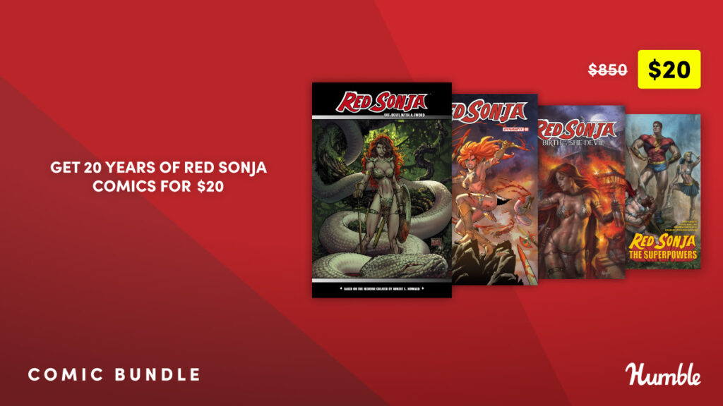 She’s celebrated her glorious 50th anniversary in recent years, and the She-Devil With a Sword is also celebrating 20 years at her current publisher Dynamite Entertainment. With a blockbuster film in theaters now, to celebrate and offer great reading for fans new and old, Humble Bundle has assembled a legendary digital deal on an expansive list of Red Sonja’s greatest hits and gems!