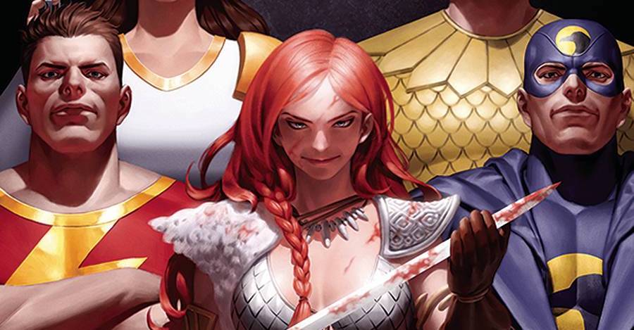 Dan Abnett has taken the mix of vampire and superheroes and supplanted the savagery of Vampi for the savagery of Sonja the She-Devil. Whilst the pair seem to be a mirror of each other, there are differences. This book shows them readily. It could be thought that Sonja is deficient in someway, but in reality Sonja is the queen of her world, capable and confident. Abnett mixes into her world amalgam heroes, the type you will have seen before, given their Justice Society feel. If the story may seem light, Abnett spends a lot of time setting the scene, which I believe will pay dividends down the line. Abnett has Sonja’s voice down pat and climaxes this books with some really strong action pieces.