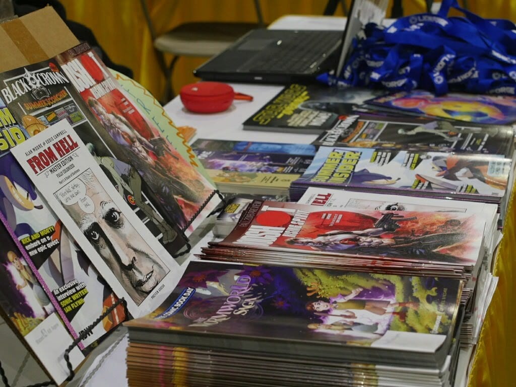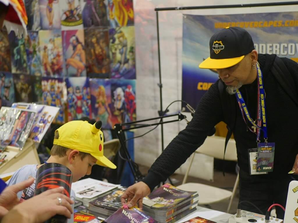ALSO…. We even had a booth at this years show, Booth 456 on aisle 400. We were the ONLY table giving away free stuff such as comics, posters, bookmarks and a FREE raffle with great toys and more comics. It is amusing to see how people react to the word free, MANY were hesitant some were happy to come over. Once they realized we had no agenda we gave away EVERYTHING! Want to thank Diamond Collectibles, Lion Forge, Valiant, IDW, Viz Media, Impact Theory Comics and Cinebook for the awesome swag donated for the fans.
