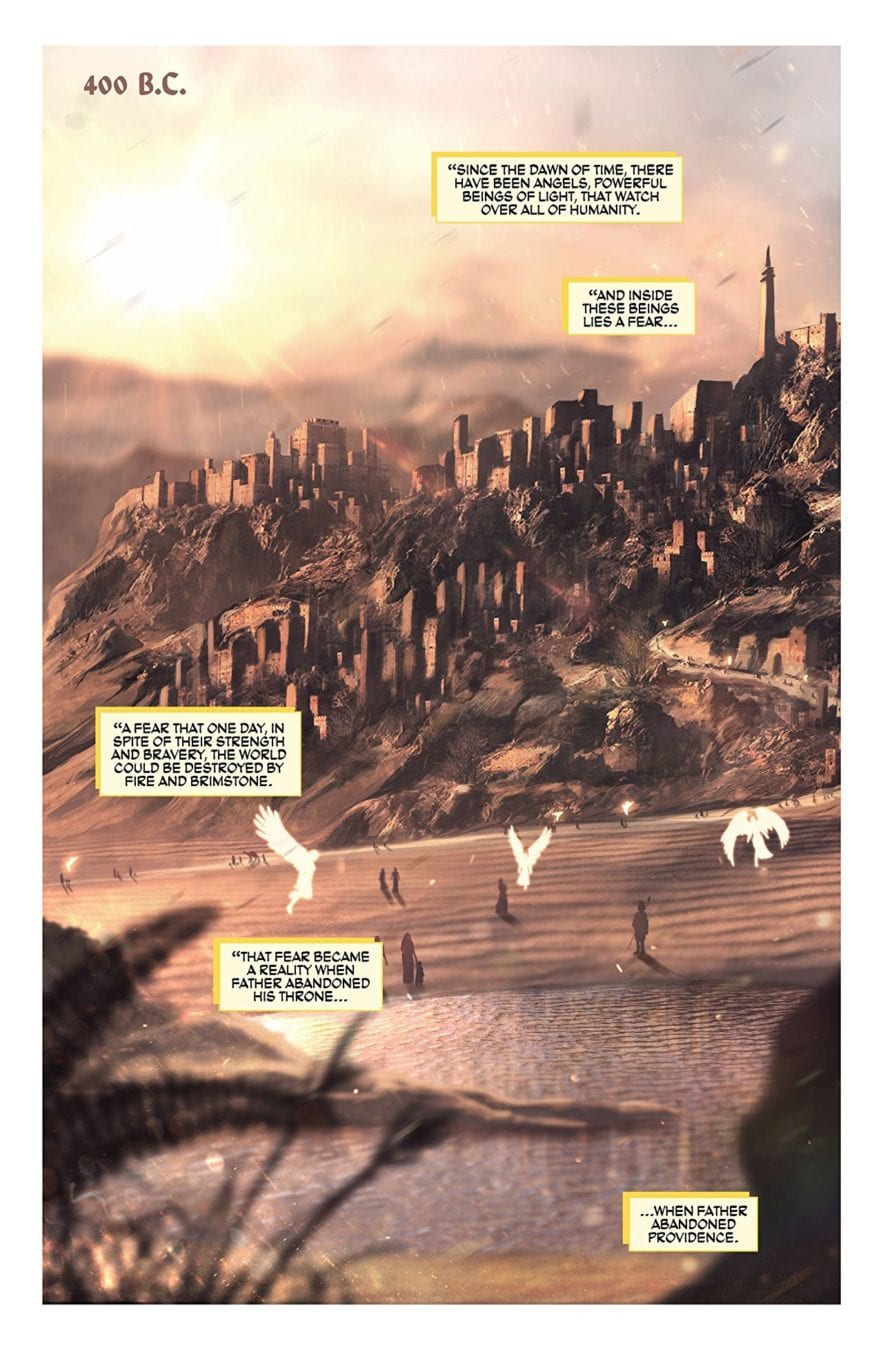 One of the most unique aspects of Knights of the Golden Sun is the scale of its world building, by alternating scenes based in the ethereal realm with others based in actual geographical locales, London and Villarreal are able to bring an element of historical fiction to the work that sets it apart from other titles with a biblical slant. London’s script weaves historical figures like Mary, Joseph and David into the narrative with the Archangels to bring the supernatural and the natural together in the very same way as the Bible. That sounds like high praise, but if you have read Knights of the Golden Sun you know it’s well deserved.