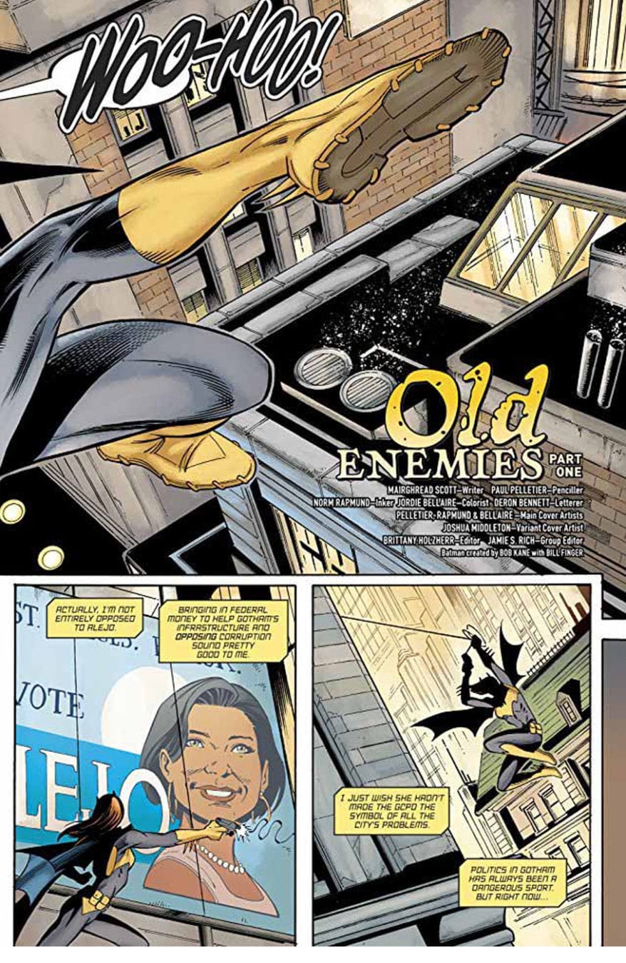 This is perhaps the most lively paced of Scott’s Batgirl issues thus far, that is not to say it is the most action packed, although there are ample action scenes, it goes beyond that. The dialog moves with a rhythm that is almost poetic in its delivery. In fact, the entire script seems to be structured with precise attention to pacing and allowing the story to unfold of its own volition without slowing for obligatory exposition, instead opting to give that exposition in a much more fluid fashion or “on the fly” as it were. This approach allows Scott to take a somewhat pedantic issue that could have labored under the weight of the important, hell mandatory story beats and present it in a much more vivacious and entertaining mode. The mandatory exposition is still every bit as present, but it is much more palatable hence more effective.