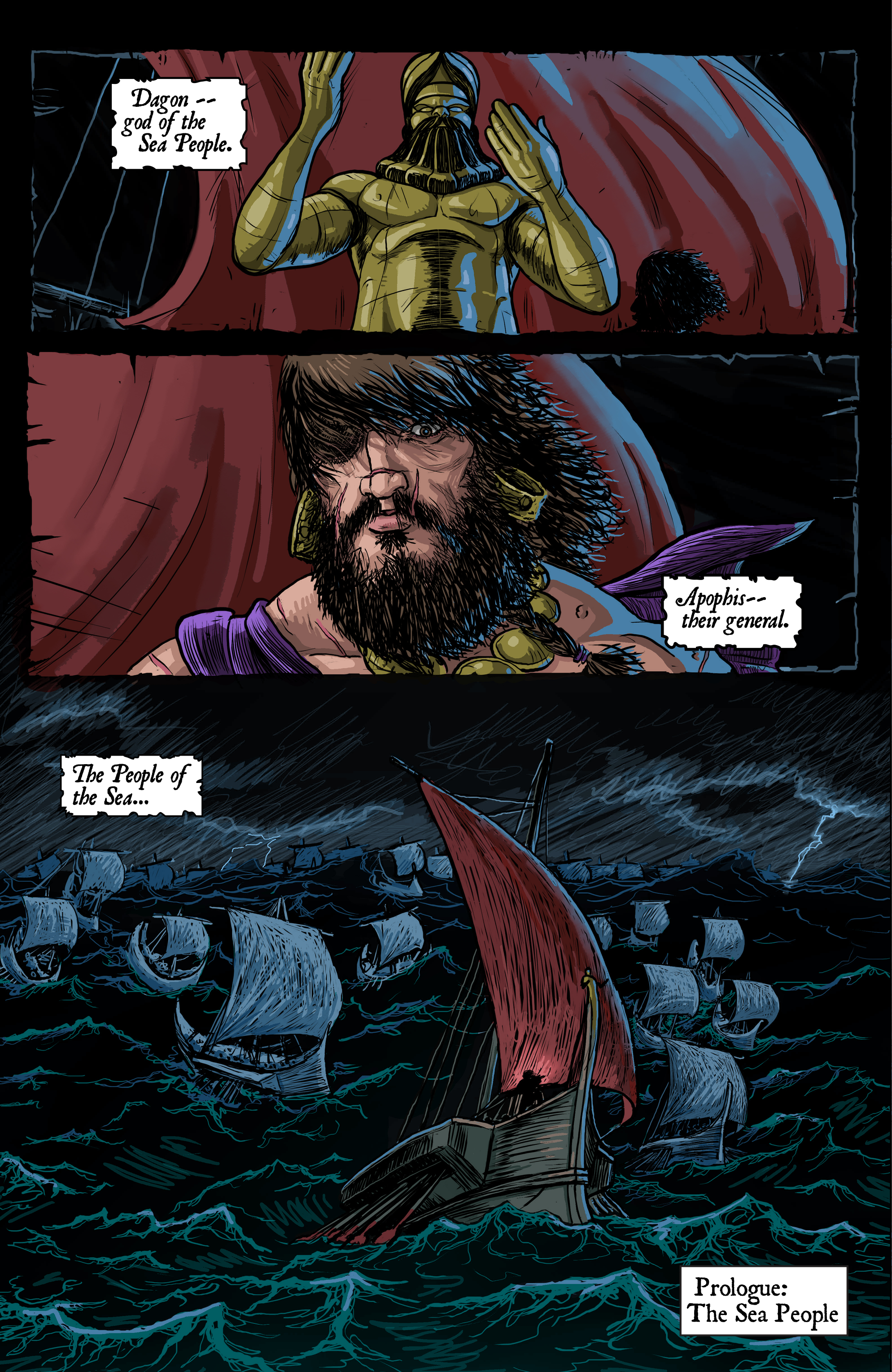 There is something of Conan in Van Cleve’s tale although tempered with mythology and biblical history. The warfare is depicted as poetic in its brutality while defined and detailed in almost Shakespearean drama. The cults of several lesser gods like Bacchus and Baal play crucial roles, particularly in creating an atmosphere of almost constant war among the various volatile sects of pagan worshipers and warriors. The tension and action are so well balanced and sustained throughout all seven issues of this series. Very much the classic hero’s journey the plot is gripping as it is epic in scope and while it tells the tale across a vast expanse of time at its core it is the timeless battle of good vs evil on a biblical scale.