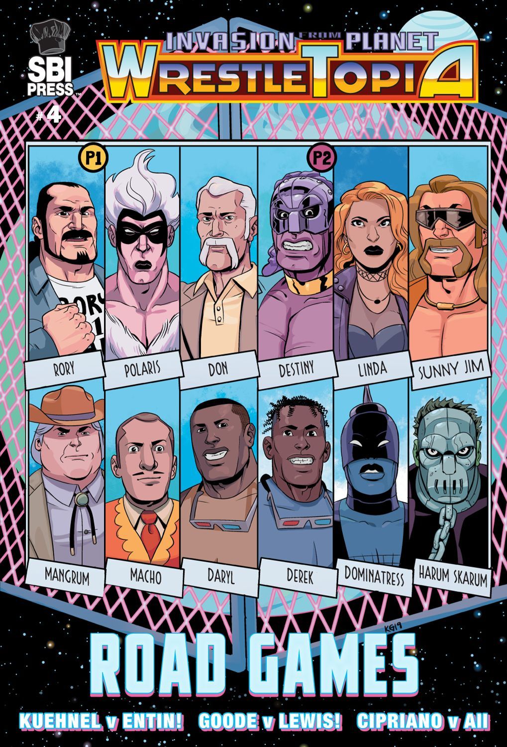 The story is full of classic professional wrestling trope as well as being a loving homage to some of the wackier sci fi films of the 30s – 50s. It’s El Santo movies combined with Ed Wood, but it’s so much more. This isn’t just a fun and goofy mashup idea, this series has got some heart and soul to it. Rock N Roll Rory Landell was a talented second generation wrestler who got tired of his promoter never giving him his due and a shot at being world champion. So Rory puts out one heck of a proclaiming that the world title isn’t good enough because he has proclaimed himself Galactic champion but for walking out on the big time. Here is where things take a turn into goofy fun, as an alien empire ruled (somehow) by every trope of pro wrestling, happens to catch this broadcast in deep space and their leader Manifest Destiny invades Earth to show this upstart who the real galactic champion is. In a nice bit of cleverly thought out physics, Rory’s message takes 15 years to reach deep space and in that time, Rory has slipped from being a prime example of male machismo to a drunken bum lobbying in the work wrestling circuits possible.