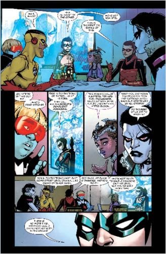 There is a rather heavy subtext involving Damian and Kid Flash that brings with it an undercurrent of drama, hence creating a degree of tension that threatens the entire team. This tension is heightened further when Roundhouse suffers a serious injury due to an Ikon Shield malfunction during the confrontation with Deathstroke. Adam Glass and Christopher Priest work extremely well together, complimenting one another’s strengths and crafting an exciting and engrossing story that delivers on an emotional level as well as with big action.