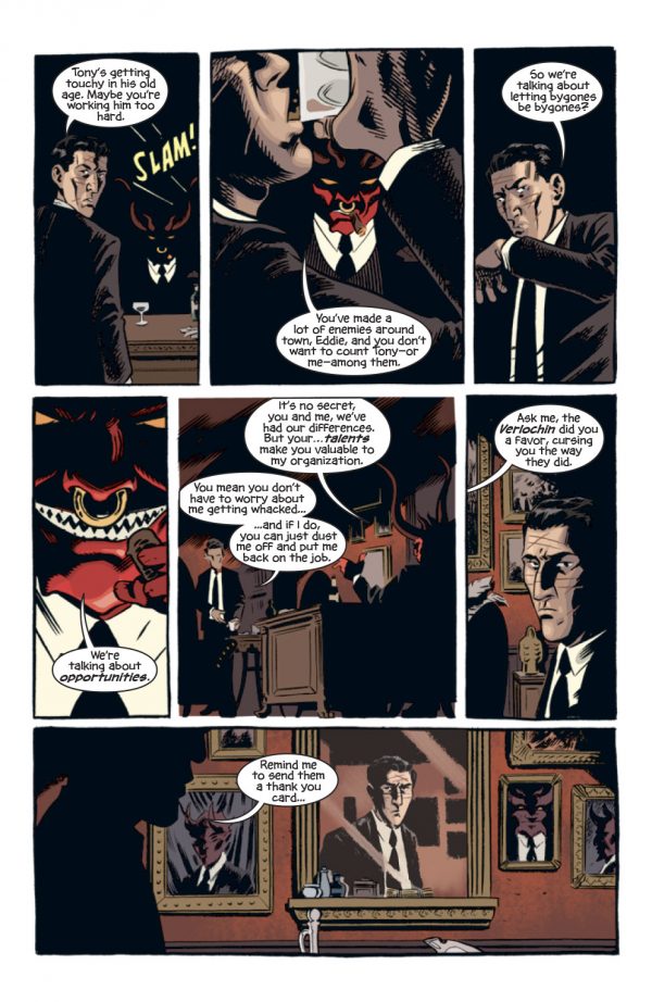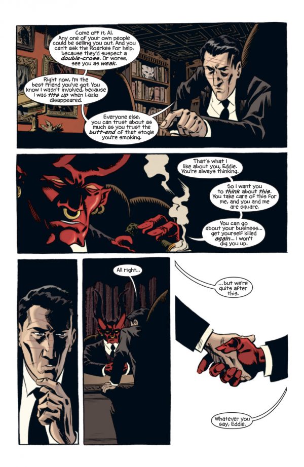 If you are a fan of gangster books, the occult or demons there may well be enough of the various tropes on show to keep you entertained. Between them, Bunn, Hurtt and Crabtree have given us a book that is the tip of the iceberg in this particular world, with further extensions hinted at as there are a number loose ends and dark fates that await in the shadows, which may yet still have an impact on Eddie and challenge his Lazarus-like powers, even if not all wounds leave scars.
