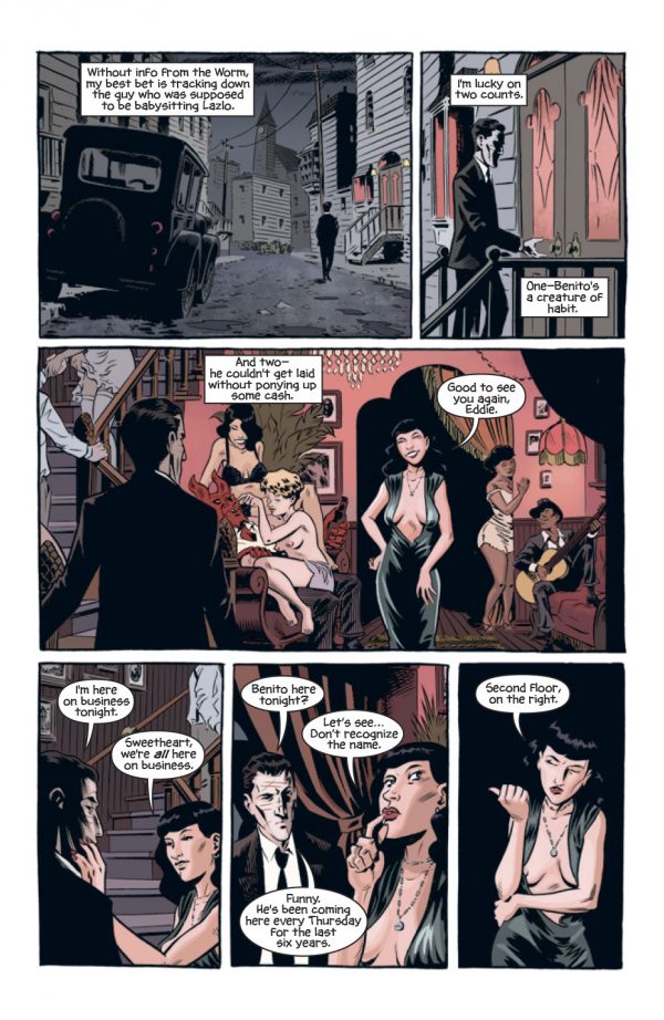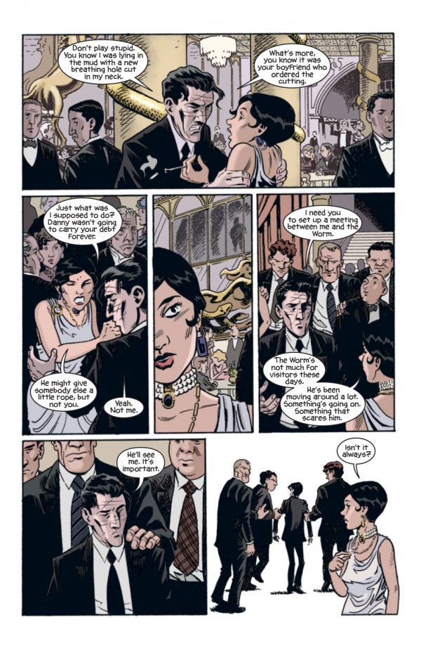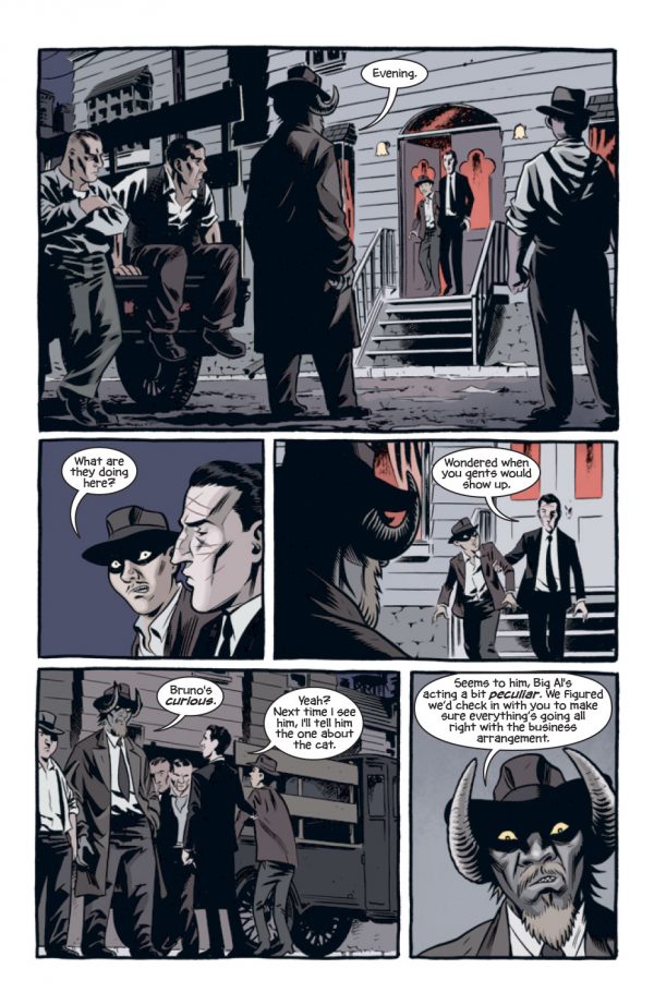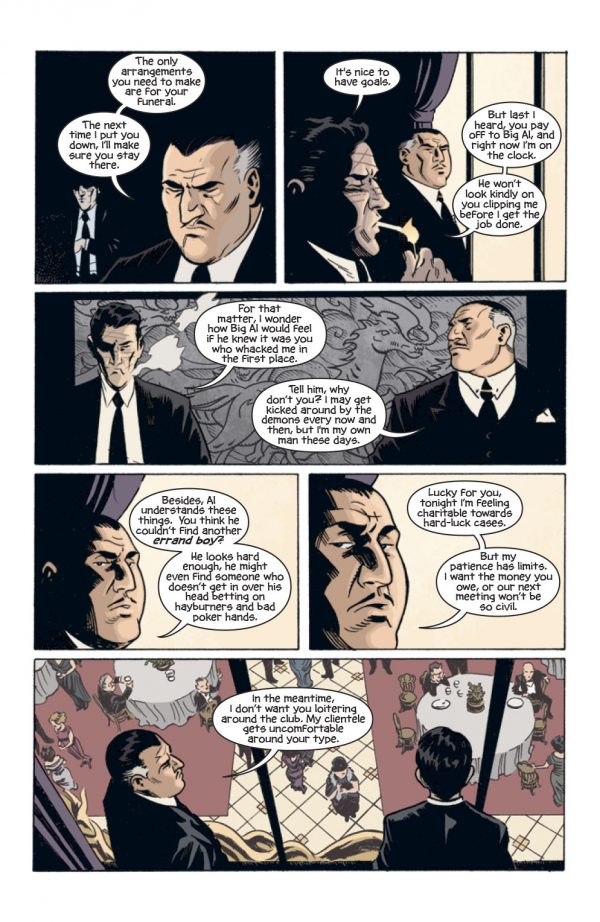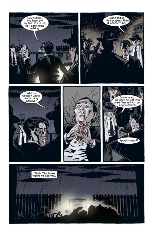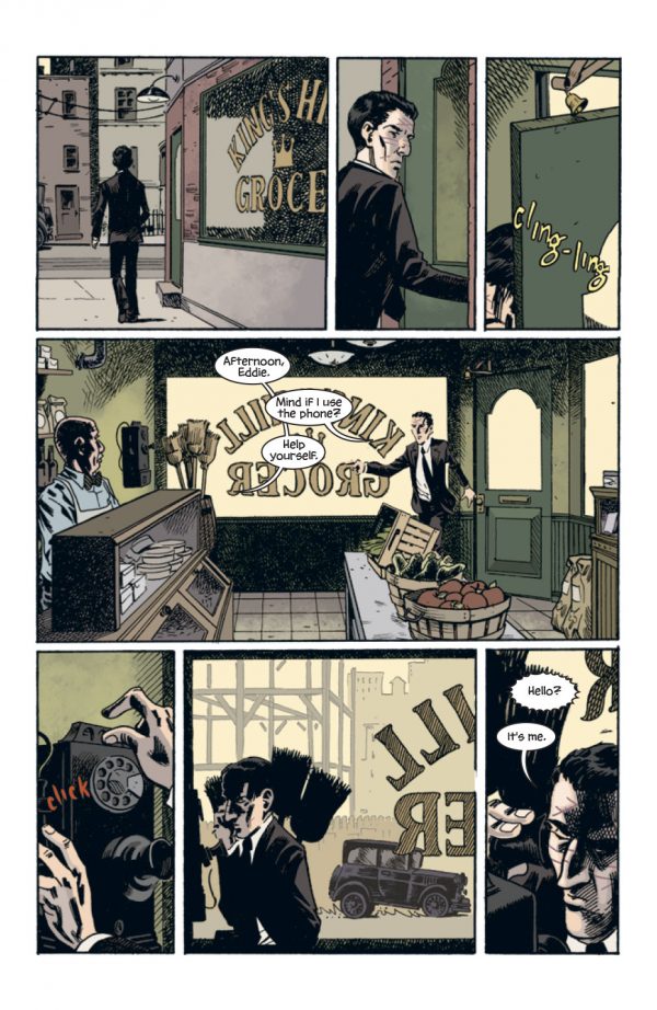 The feeling of the 20’s is further established through the art of Brian Hurtt, with a Matt Wagner or even  Darwyn Cooke styling.  The simple look works well enough, with pencil lines fading into the colors of Bill Crabtree, giving the book an atmospheric feeling from page one onwards.  The pages are quite panel laden and dialogue heavy in places, meaning that you do get a lot of reading from the book.  The story itself does hold a couple of surprises, with the dream communion being the stand out contrast in the book.