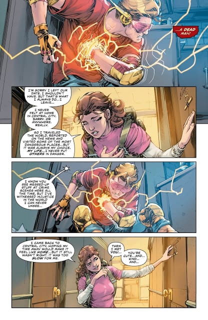 Williamson relies on some very tried and true Flash tropes such as phasing and time travel to tell an origin story that feels new and innovative, the inspired decision to use such an eclectic villain as the Turtle is one particular element that reaps big narrative rewards. The chemistry between these two is amazing, the obvious opposite power sets and even the physical differences all play so well here to tell an intriguing and fresh origin tale. Williamson also digs deep into the budding relationship of Barry and Iris. This is a bit different than we’ve seen this play out in past iterations, the tumultuous nature of their early relationship is a new wrinkle that Williamson has brought to light in this narrative. It’s not a path usually trodden by these two, however the combustible nature of this relationship could produce a dynamic that would enhance the dramatic elements of the arc and beyond.