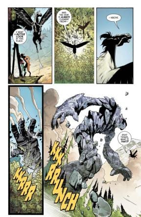 In the aftermath of her confrontation with Ares Wonder Woman is now faced with the appearance of several other creatures of a mythical nature, the situation intensifies when a duo of Titans in the form of living mountains begin throttling one another and stomping on everything in their path. This is when Diana, in desperation turns to Giganta. Wilson embraces the rivalry between the two instead of making this a tale of Giganta’s redemption. The chemistry this creates is so entertaining, of course there is tension, but it isn’t dark, oppressive white-knuckled tension, its fun and that is why it works so well. Wilson’s run on this title has maintain a steadily ascending trajectory, each issue improving on the last and while I thoroughly enjoyed the writers before her, Wilson has placed her mark indelibly upon Wonder Woman and I for one cannot wait for the next issue.