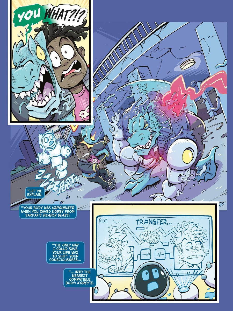 Once bonded, Korey and Rex will have to learn how to get along so they can stop an army of Zardax’s alien parasites from taking over the district, the city, and then the planet! Jurassic measures will need to be taken if this dino-mic duo want to save the day…