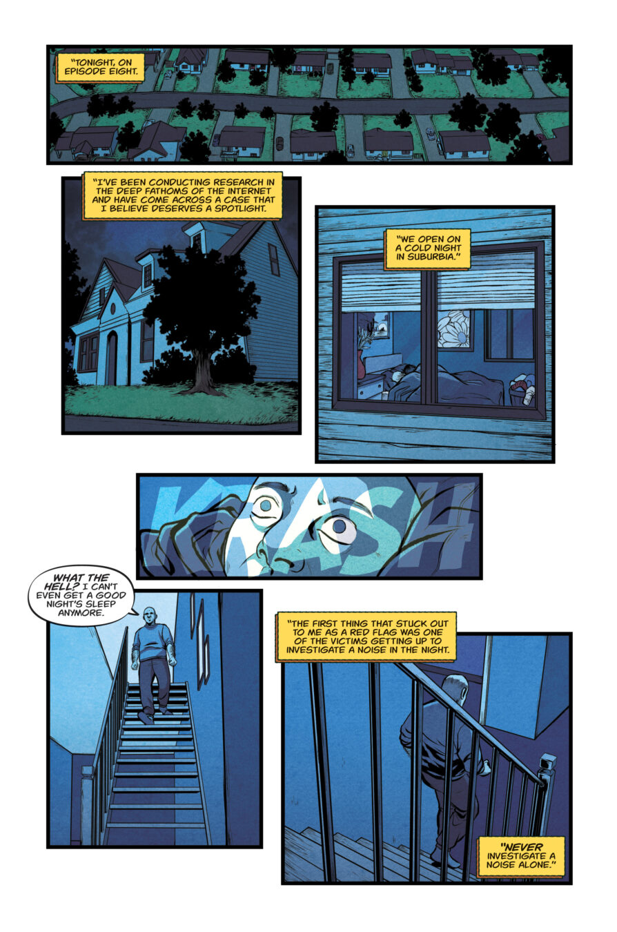 “Val and I started working together over 5 years ago and we’ve been quick friends from the start. We spent much of our time during the pandemic going over story beats for our book, watching horror movies together, and bonding over our shared love of all things horror, comics, video games, and Nine Inch Nails. After making our series, Finger Guns, I knew Val and I would continue to work together for years to come. That’s why as soon as I had a big idea for a horror series, I knew I wanted to bring him in on the creation process as early as possible and collaborate even more than we had in the past, by co-writing the series together. I knew together we’d bring more than enough expertise to attempt to create something really rad while also being new and different. Especially with a sacred genre like horror that we both hold dear in our hearts, we wanted to balance paying homage to our favorite things about the genre while coming at it from an angle that we haven’t seen before and presenting new ideas. I think what we’ve cooked up is going to be a lot of fun for fans of slasher horror. Mad Cave has been great about letting us run wild with our ideas and I can’t wait to share the twists, the celebration of horror and most of all the slashes.”