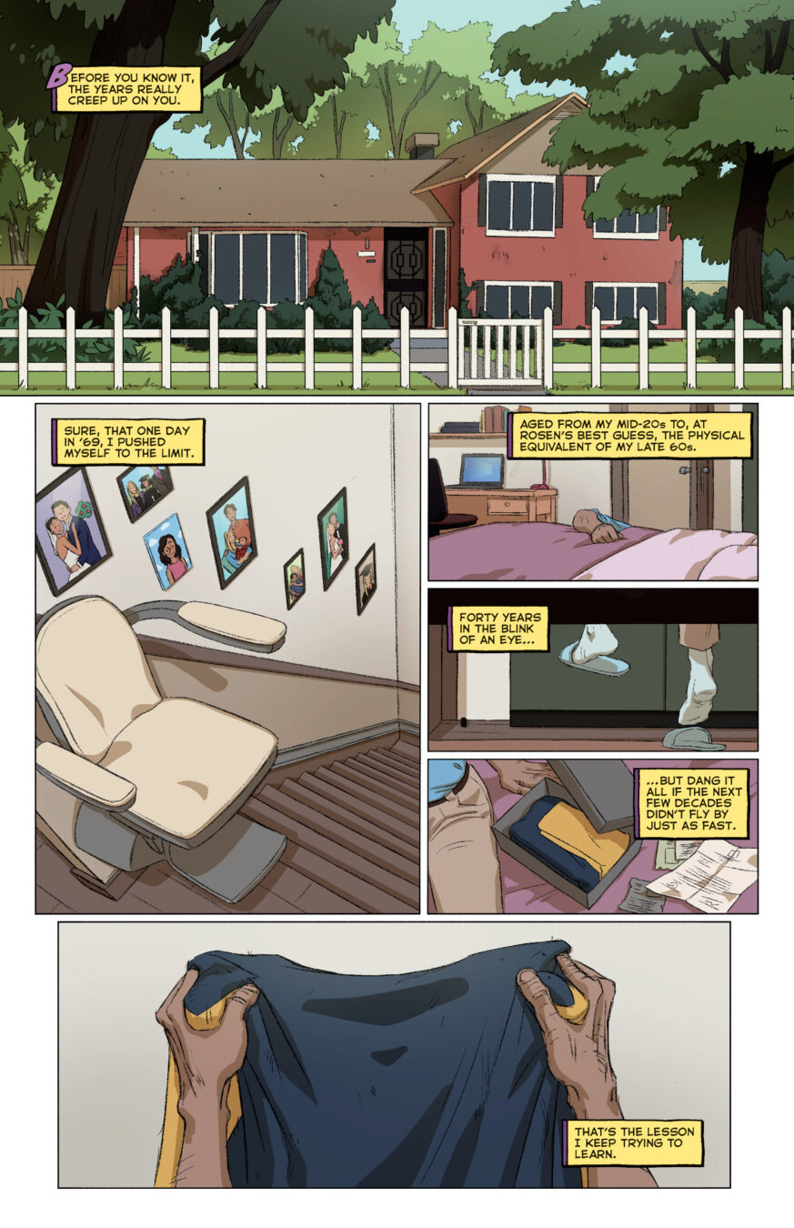 Elderly Dale DeSouza, the former Silver Age speedster known as Bullet, is living out his final days in quiet isolation—until a visitor from the past (or is it the future?) drags him back into action. Transported to 1967 by a time-traveling scientist with more ambition than ethics, a newly de-aged Bullet must navigate old foes, new threats, and the strange twists of his own legacy. Can he get back to his own time… or will he change history first?