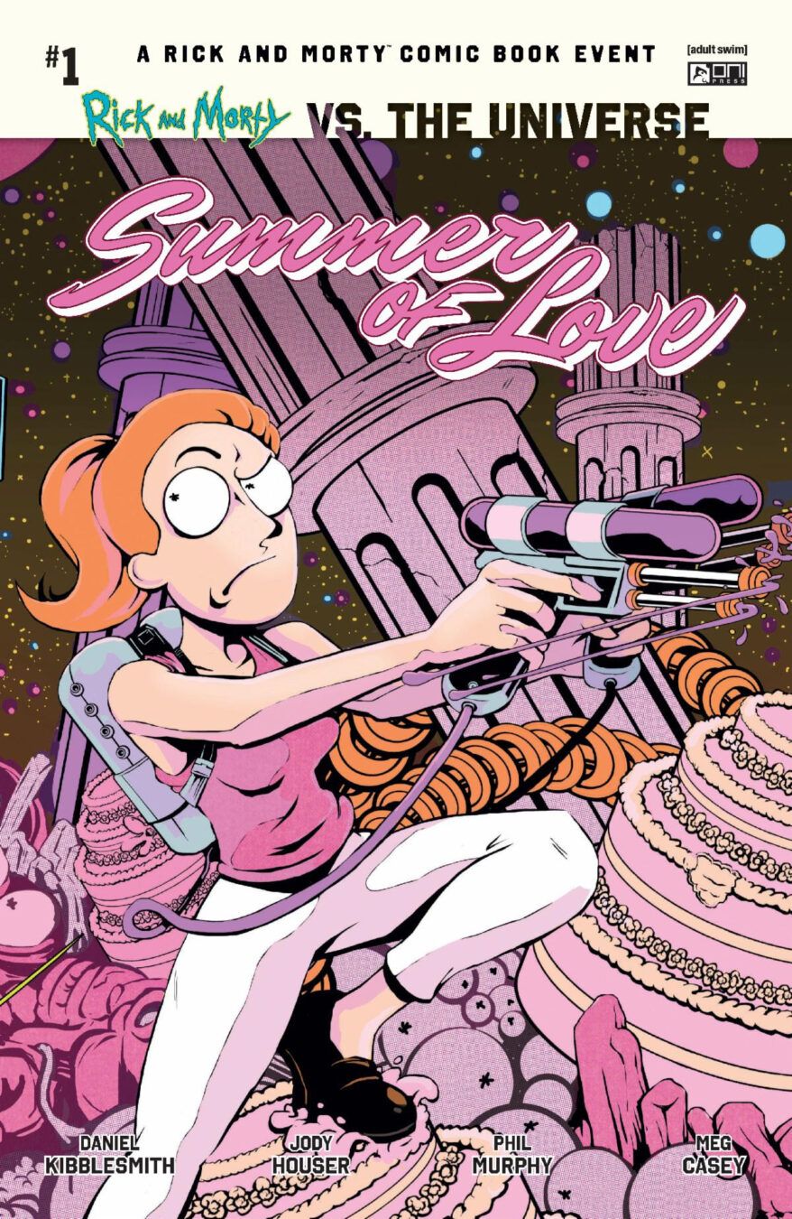 Tying directly into the events of RICK AND MORTY VS. THE UNIVERSE – the FIRST-EVER Rick and Morty comic book event from cosmos-colliding creators Daniel Kibblesmith (Loki) and Jarrett Williams (Speed Force) – RICK AND MORTY VS. THE UNIVERSE: SUMMER OF LOVE #1 is the first of the three TOP SECRET TIE-IN SPECIALS co-piloted by Kibblesmith and a stunning array of surprise guest talents. Ten years of acclaimed RICK AND MORTY comics at Oni Press have all led to this: the ultimate, dimension-smashing jumping-on point for fans old, new and in-between! Beginning on July 9th in RICK AND MORTY VS. THE UNIVERSE #1, follow the epic fallout across the seven stunning chapters: