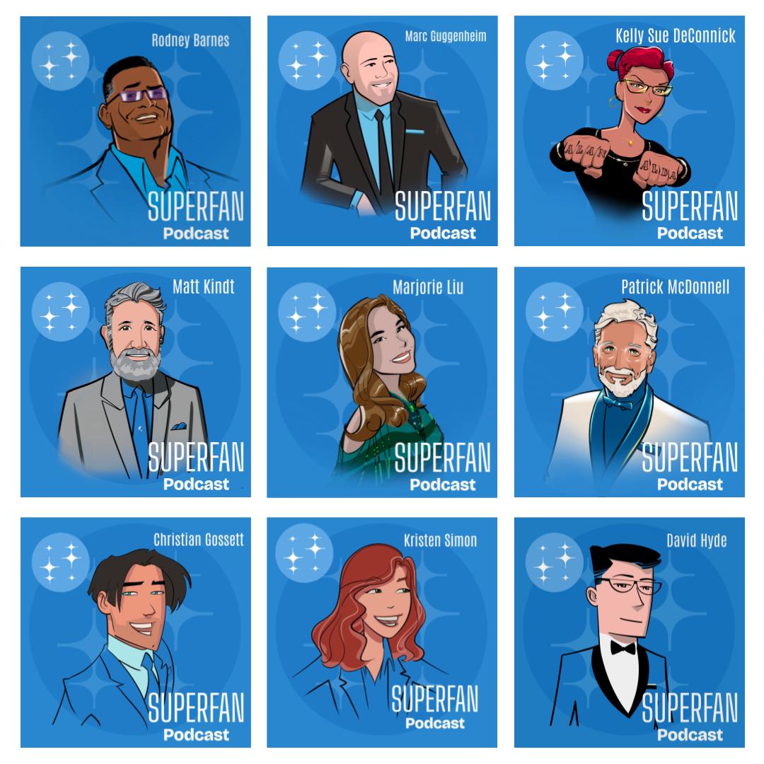“As co-hosts, we bring decidedly different sensibilities to the Superfan Podcast,” said Kristen Simon. “As a comic book editor, I spend my days unpacking stories, beat by beat. As a publicist, David Hyde is focused on getting a book into the hands of the right journalist and then getting that journalist to ask interesting questions. Concept and Character Design has been Gossett’s specialty for most of his career. Our different backgrounds inform our points of view on the podcast, sometimes in unexpected ways, but what the three of us have in common is that we’re curious people who really enjoy each other’s company, and that sense of curiosity is central to the podcast.”
