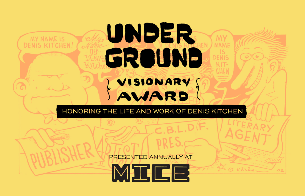The Boston Comic Arts Foundation announces the annual Underground Visionary Award, given each year to honor the work of an individual, publisher, or community-builder whose dedication has brought opportunity, attention, and change to the comics medium. With this award, the Boston Comic Arts Foundation aims to inspire creators and enthusiasts to actively engage with the comics format, fostering creativity and community in the world of comics.